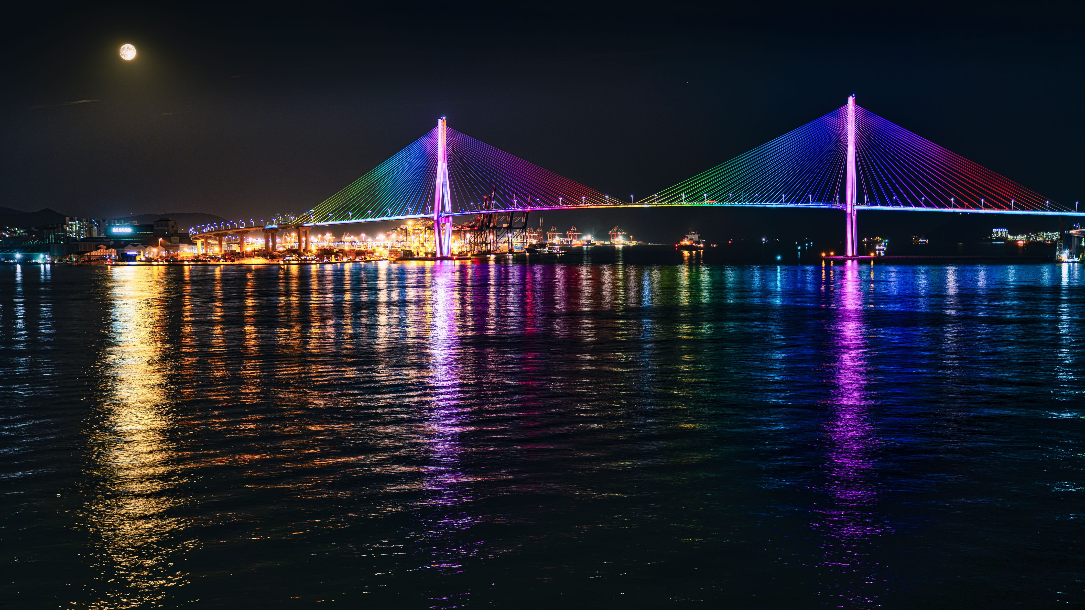 釜山港の出入口にかかる釜山大橋。 出港するクルーズ船上から撮影。 蔵出し再現像です。