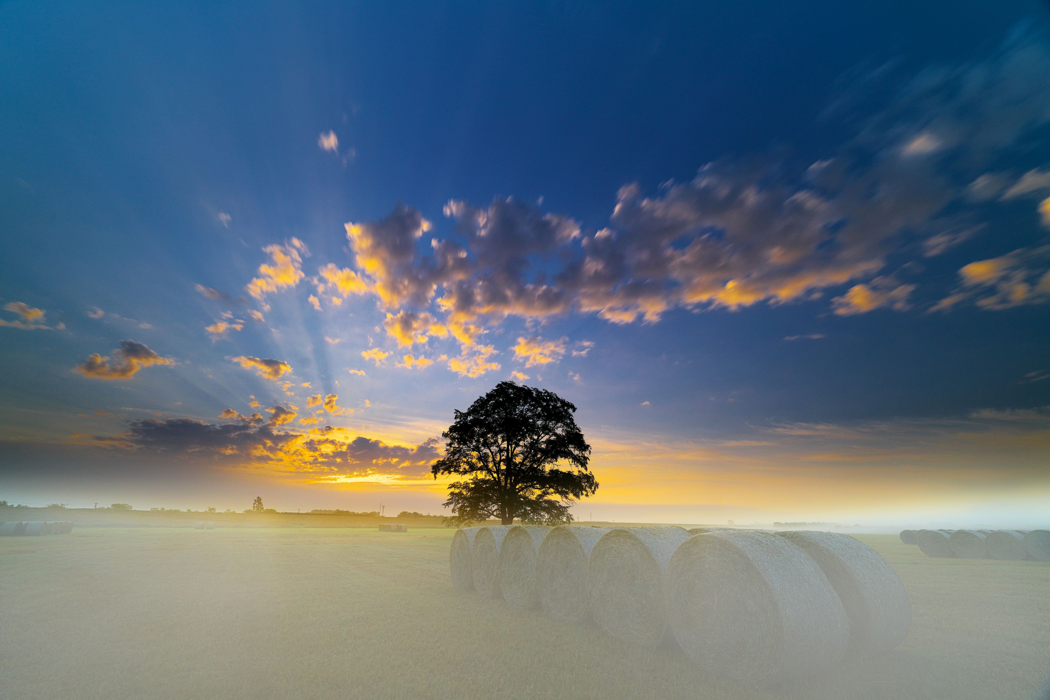 2001/8/3 α7RⅣ+SIGMA 14mm F1.8 DG HSM 牧草ロール、朝霧、朝焼け、光芒 (^^