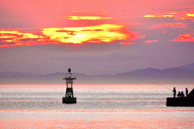 夕暮れの海光