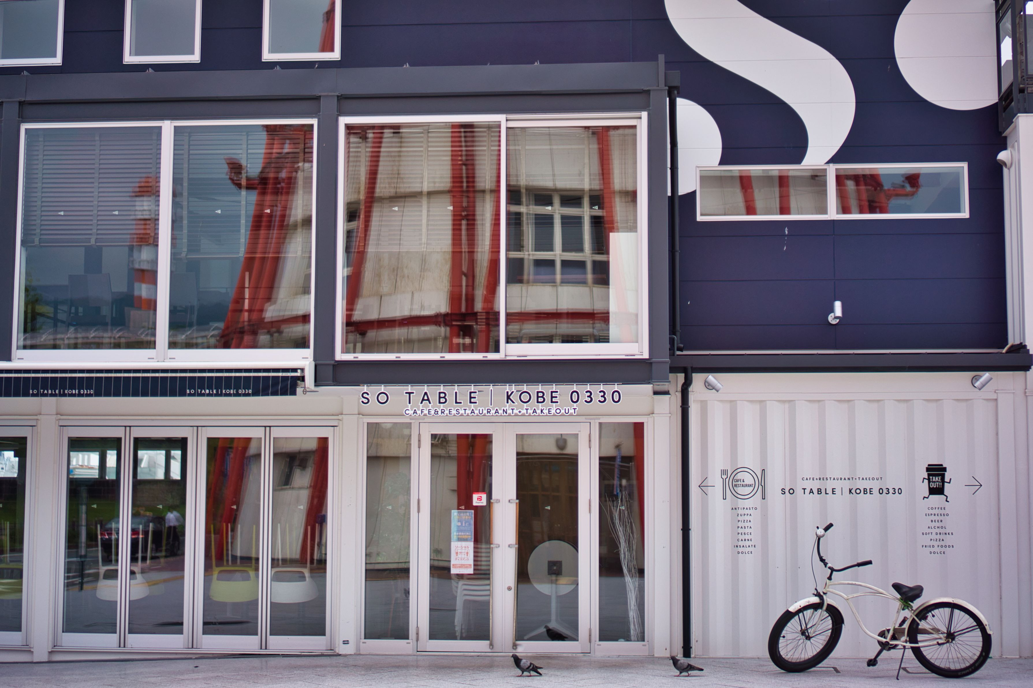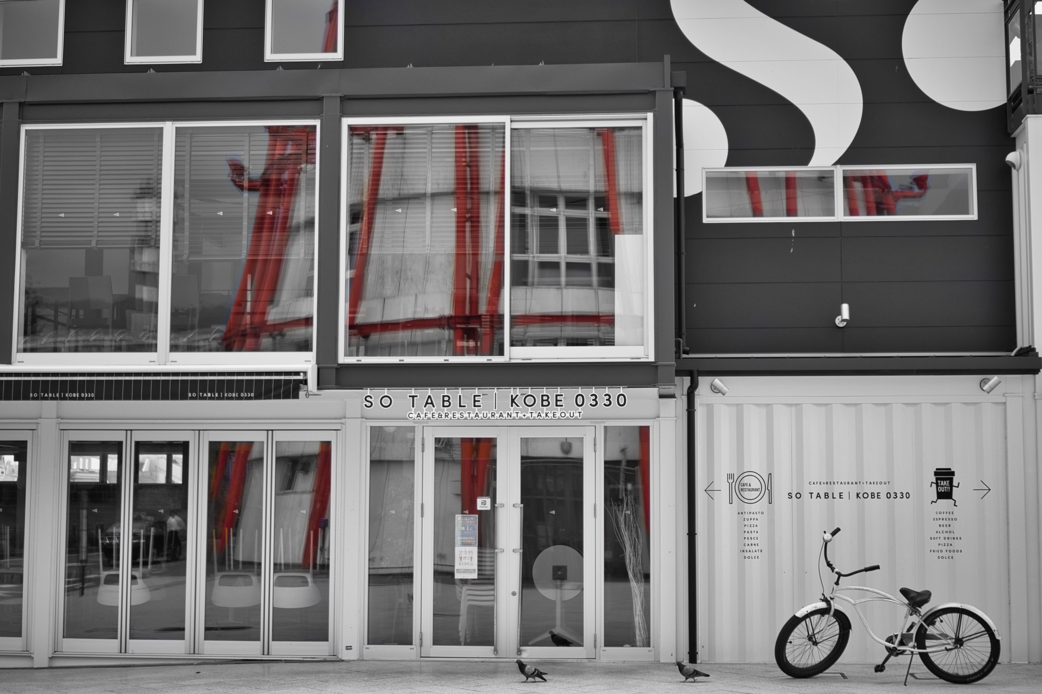35mm(52.5mm)でポートタワーをどう表現するか考えた末に・・・ 鳩も来てくれました