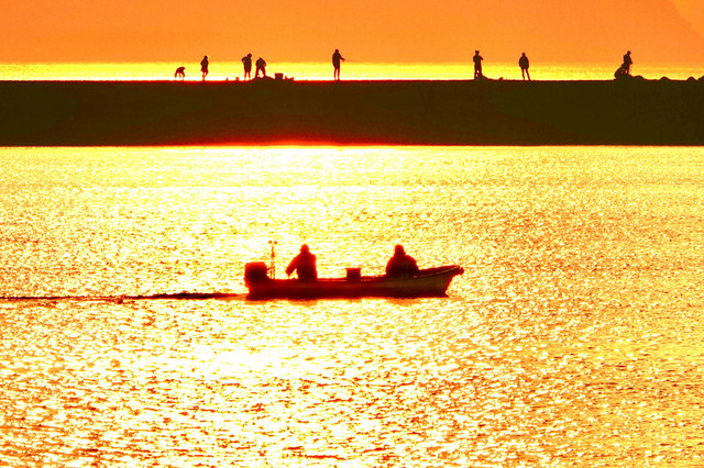 夕暮れの海光