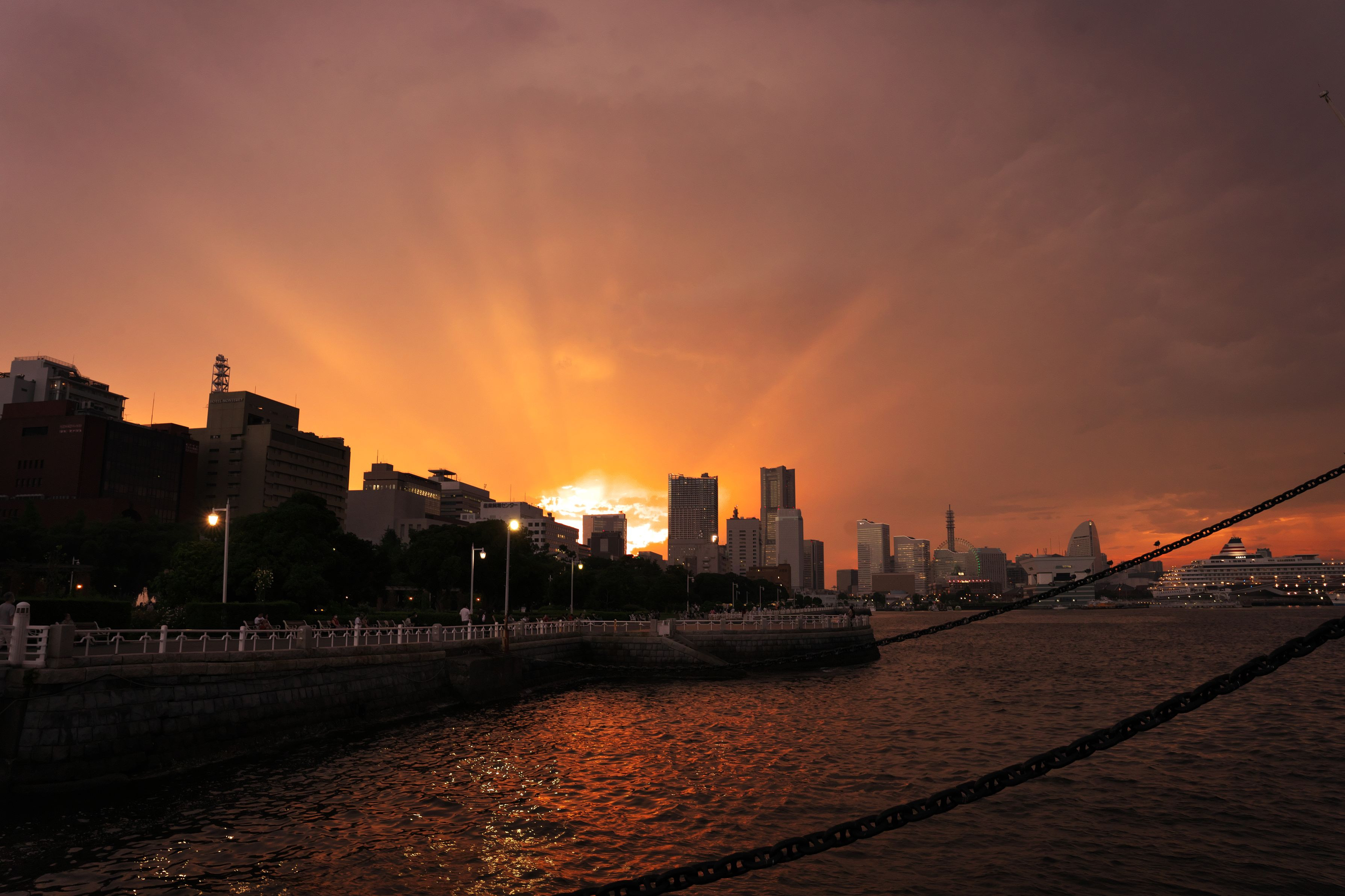 昨晩の横浜港、きれいなゆうやけが見れました。