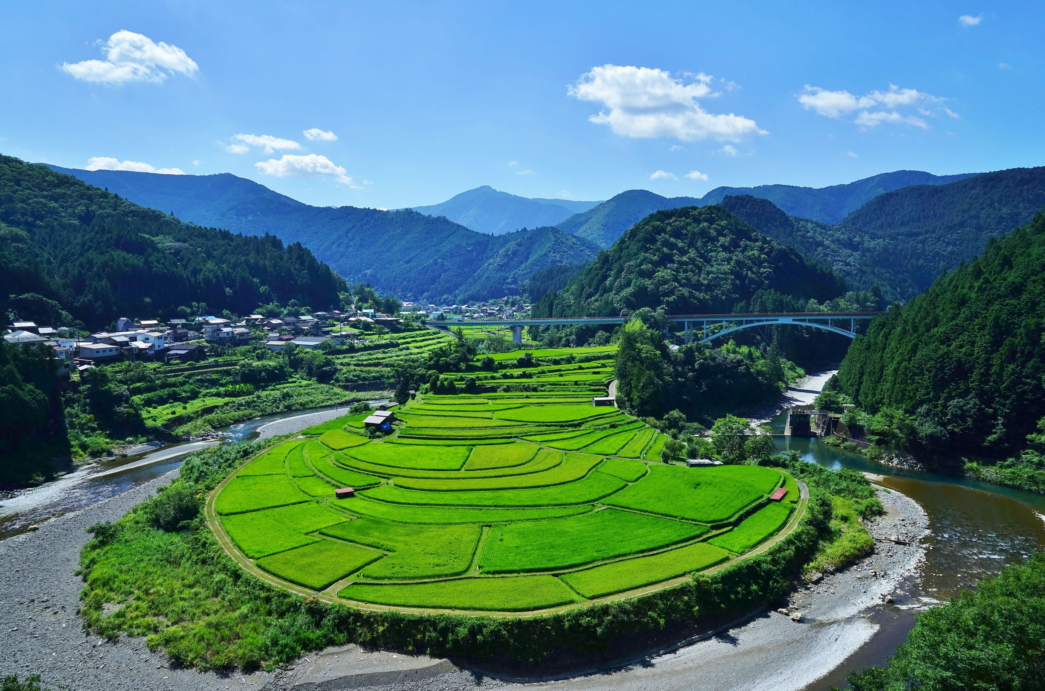 連日の酷暑に喘いでいます。しかし半月前の緑だった棚田は秋の気配です。 植物は旧暦に忠実なんですね!
