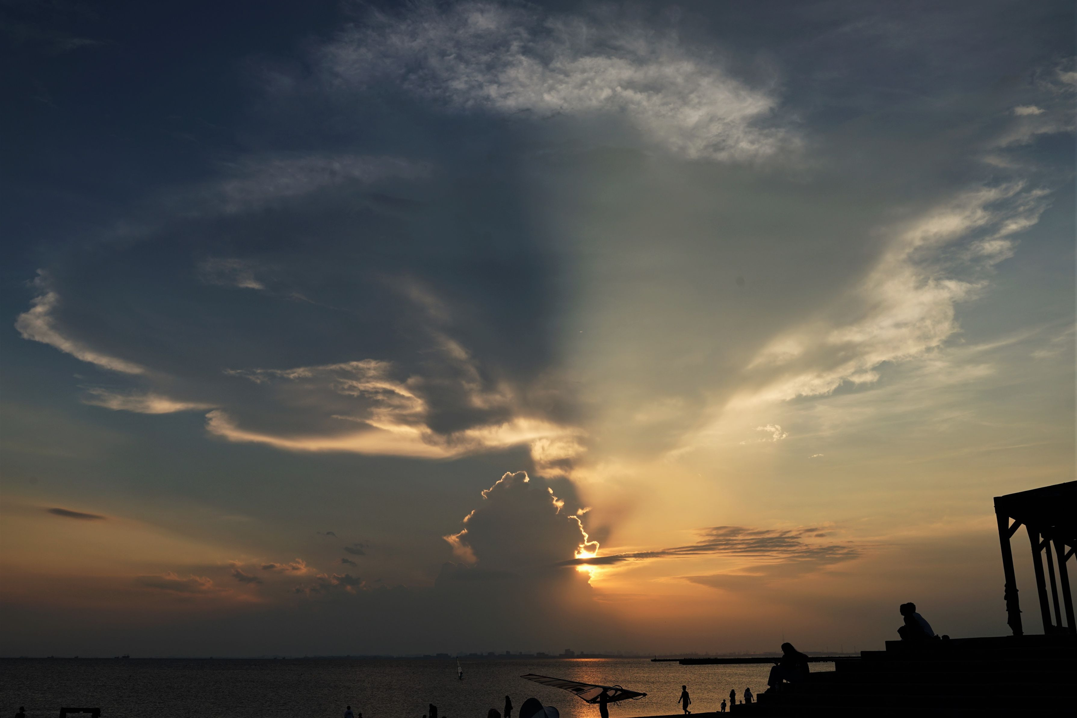 車の中でラジオから聞こえてきた「都内で竜巻注意報」 この雲がそうだったのかしら・・・ 数十分後、雲の上下が分かれていきました。