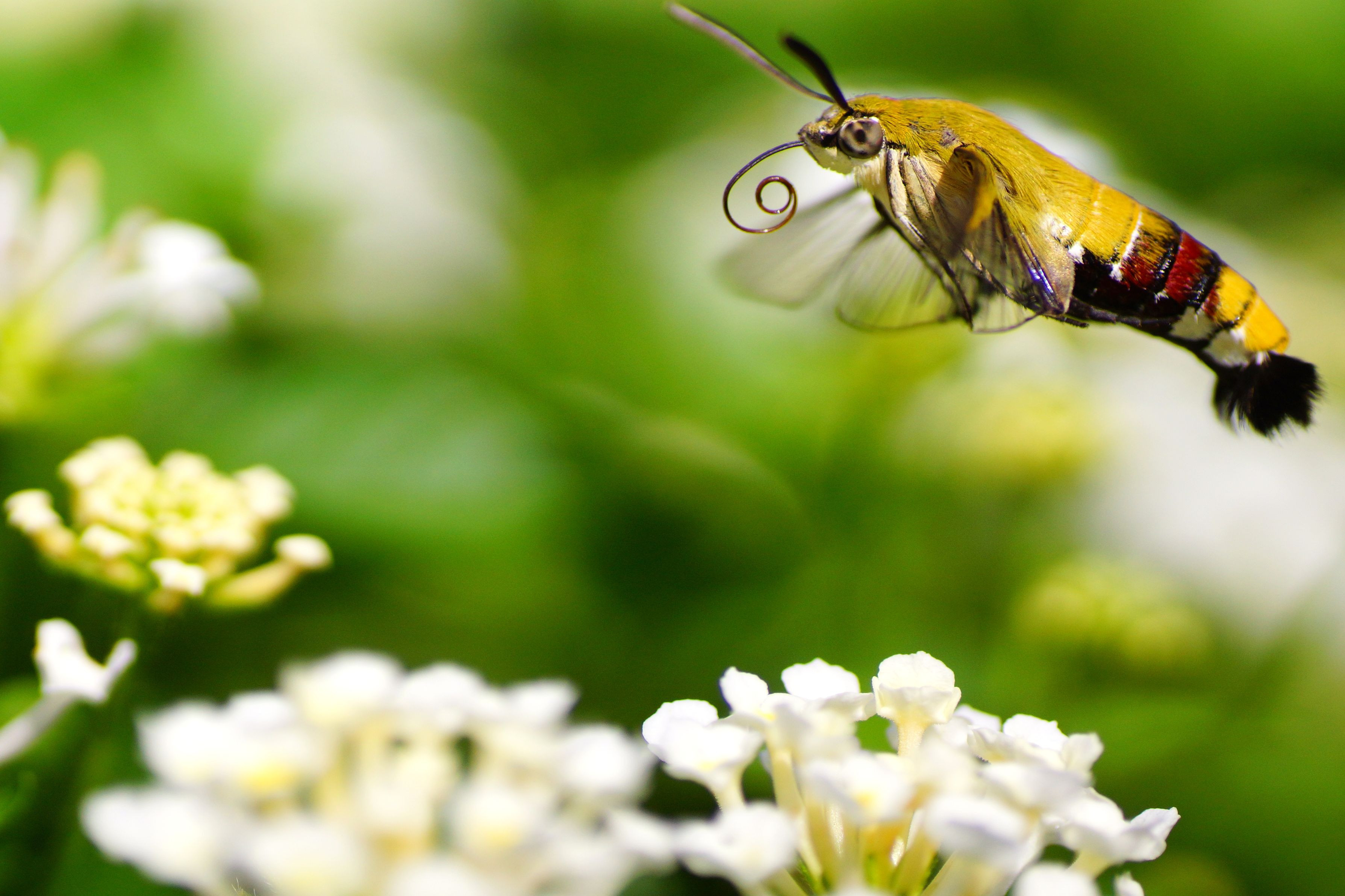 もうちょっとで天井にぶつかるところでしたねぇ…(笑) ランタナ畑にやって来たオオスカシバさんです。