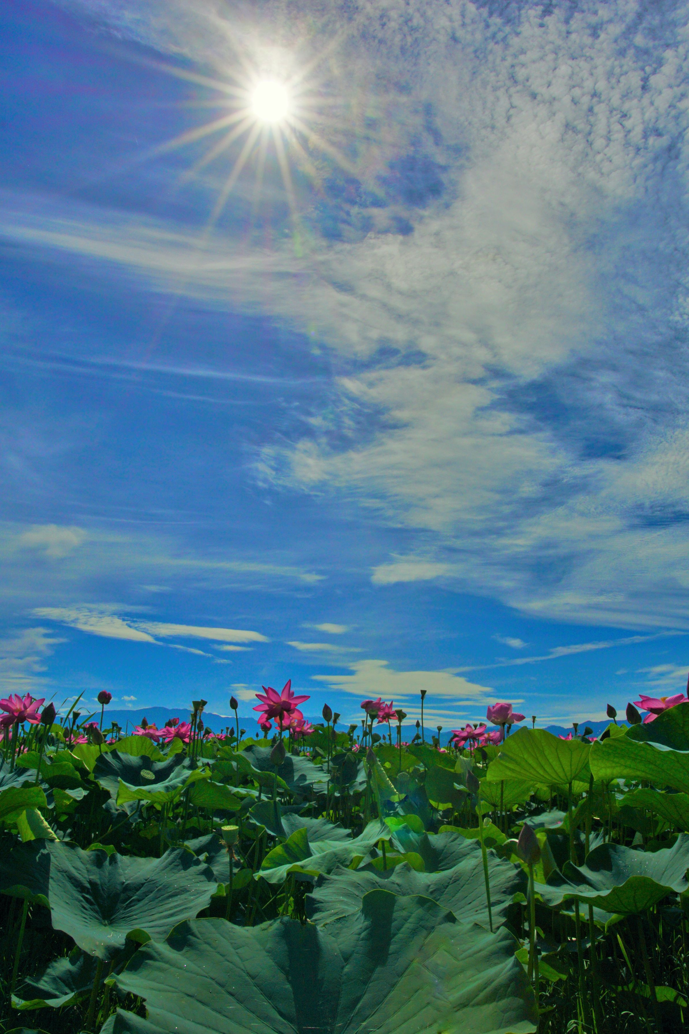 新潟県にある福島潟です。オニバスの群生に強烈な日差しが射していました。