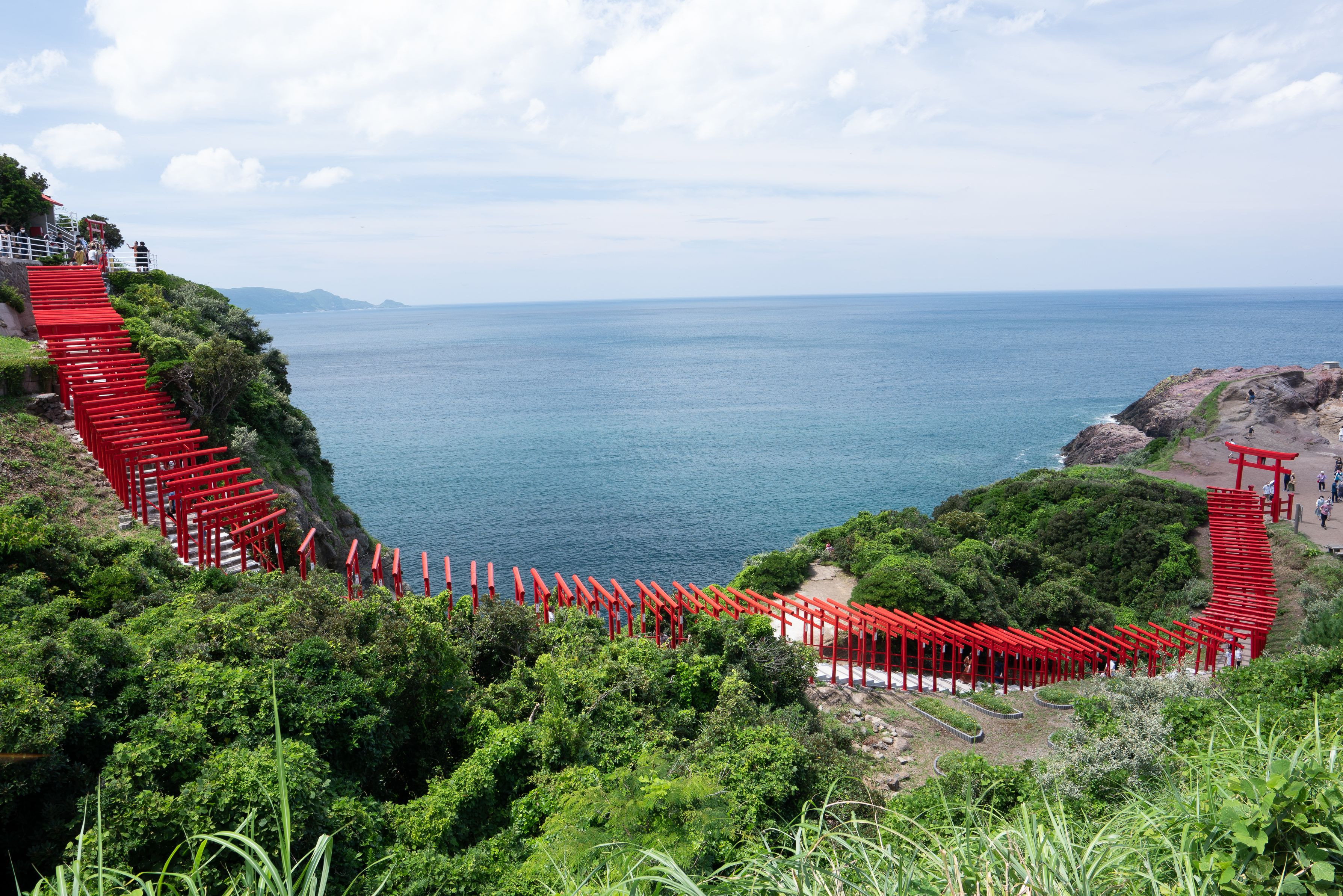 ベタベタの写真と構図ですが、気がつけば元乃隅稲成神社の麓に着いていました。広角で全体像をとる以外私には思いつきません。