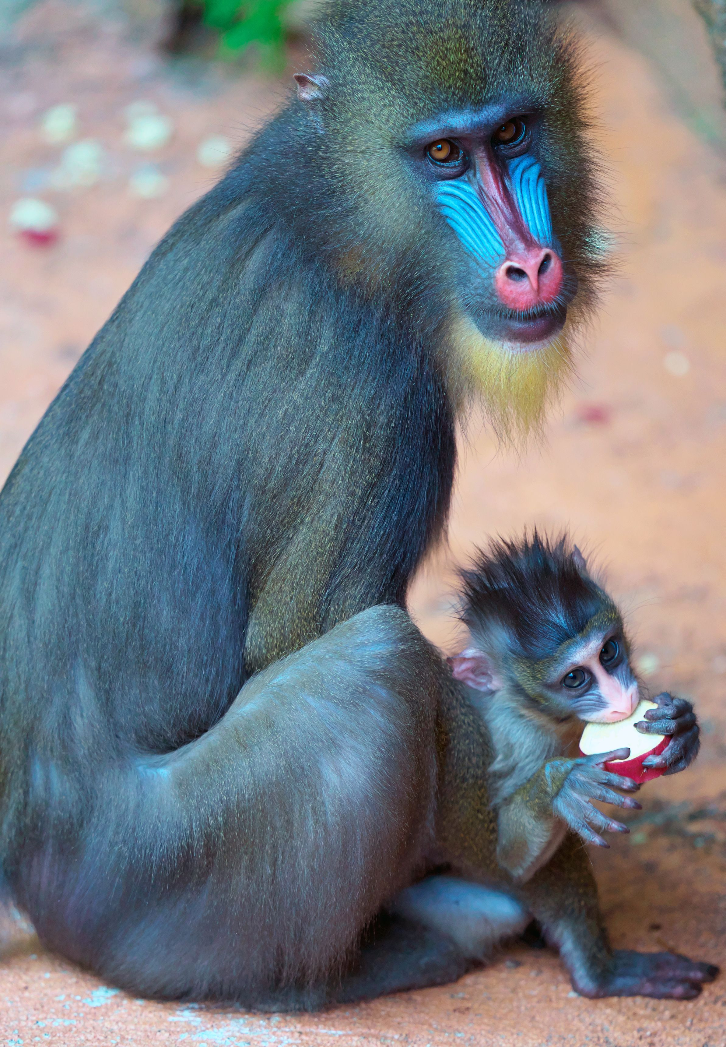 のいち動物公園のマンドリルの親子
