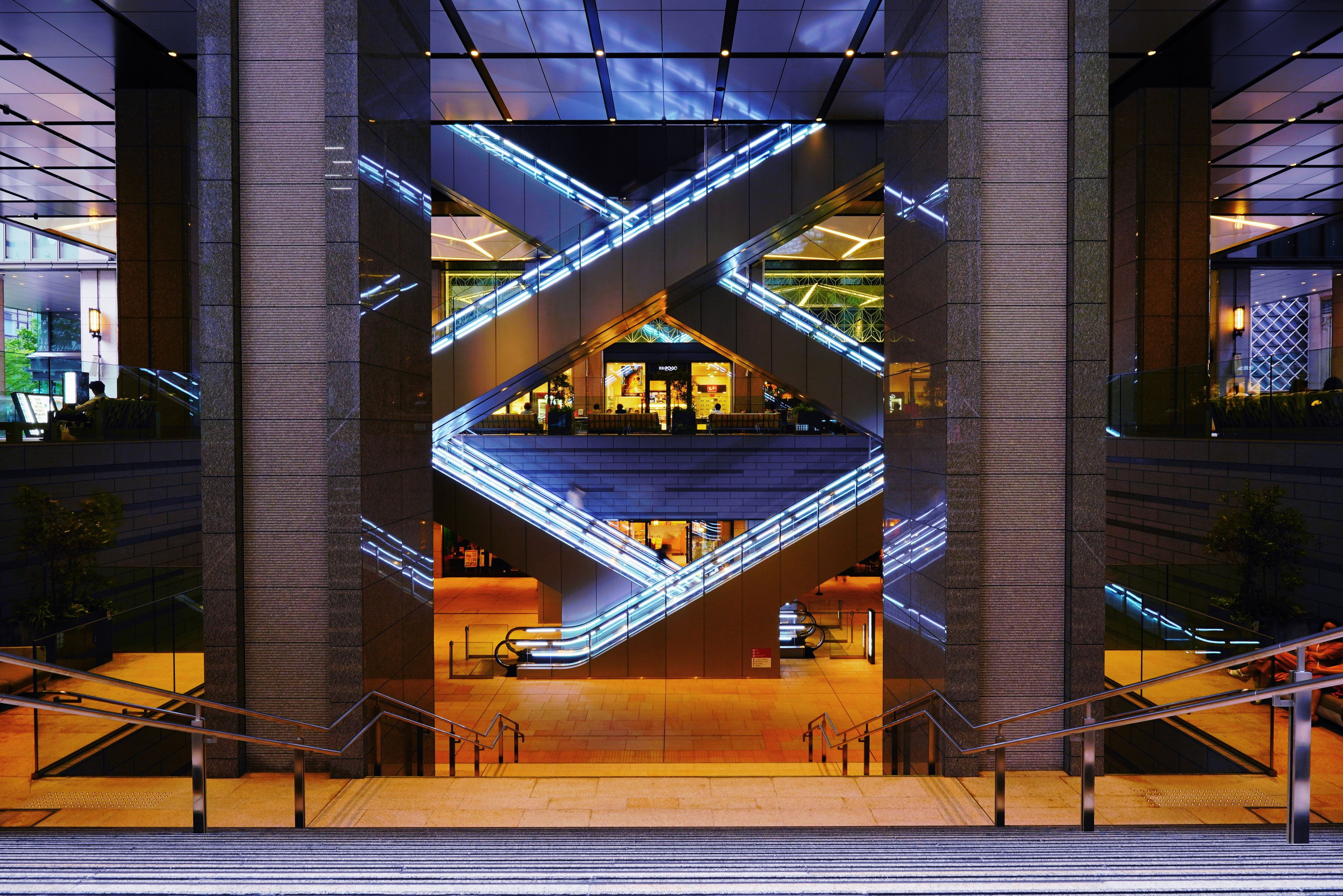昨年、京橋エドグランで撮影しました。 交差したエスカレーターと大階段が見ごたえある建物です。