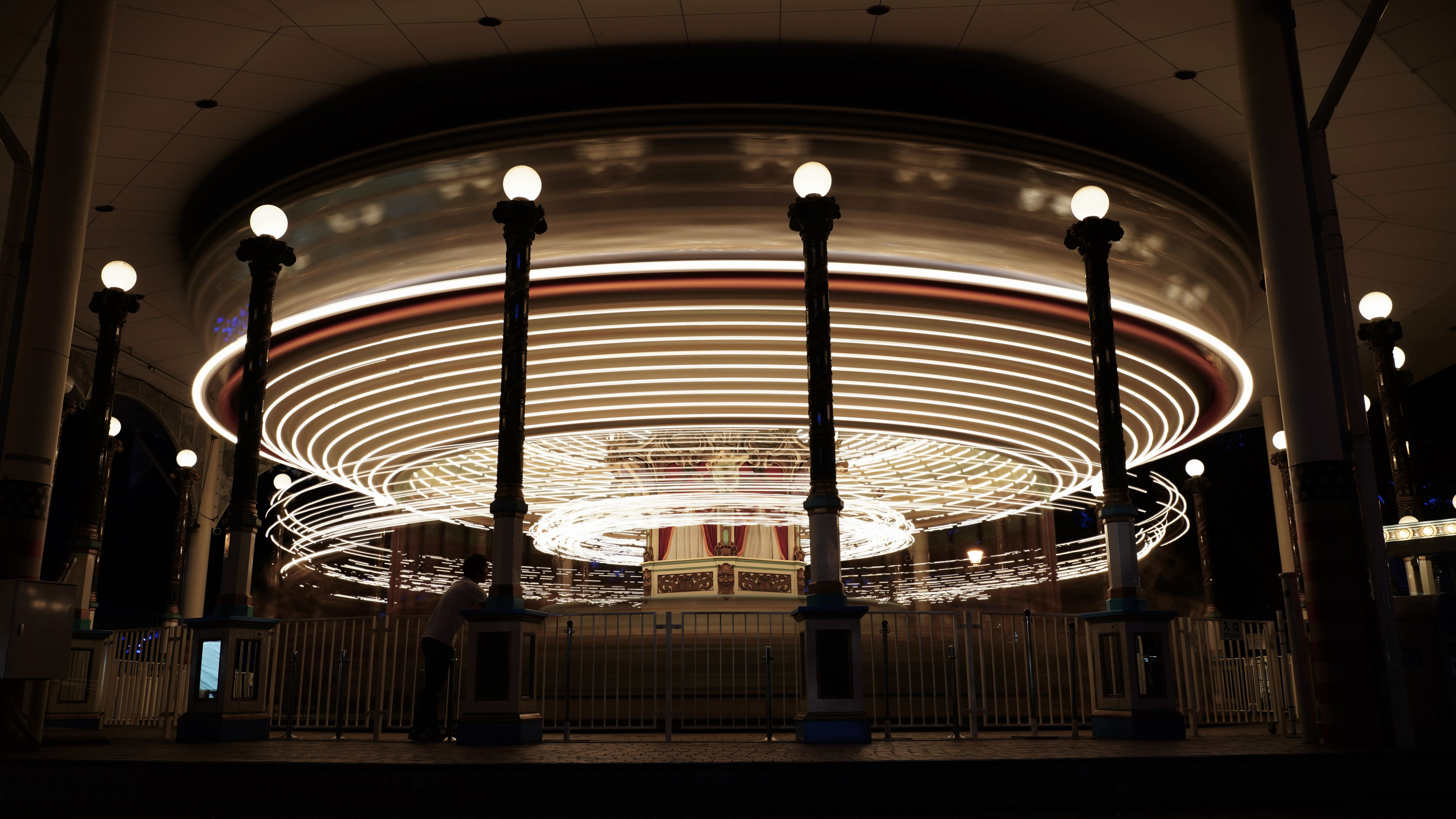 かつて、としまえんの紫陽花ナイトを撮影しに行った時のメリーゴーランドです。 再掲に当たり、色と明るさを微調整しました。