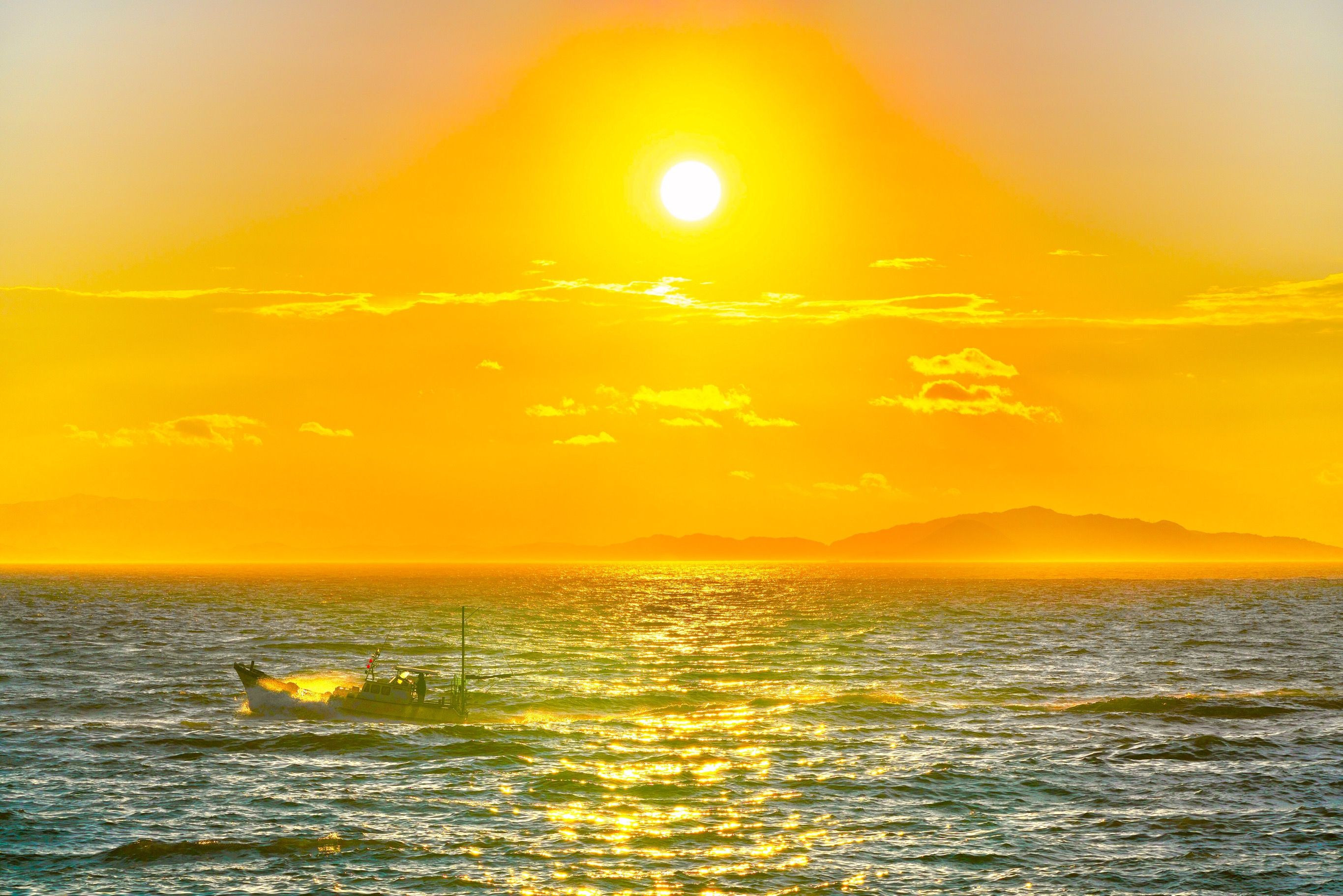 夕暮れの海光