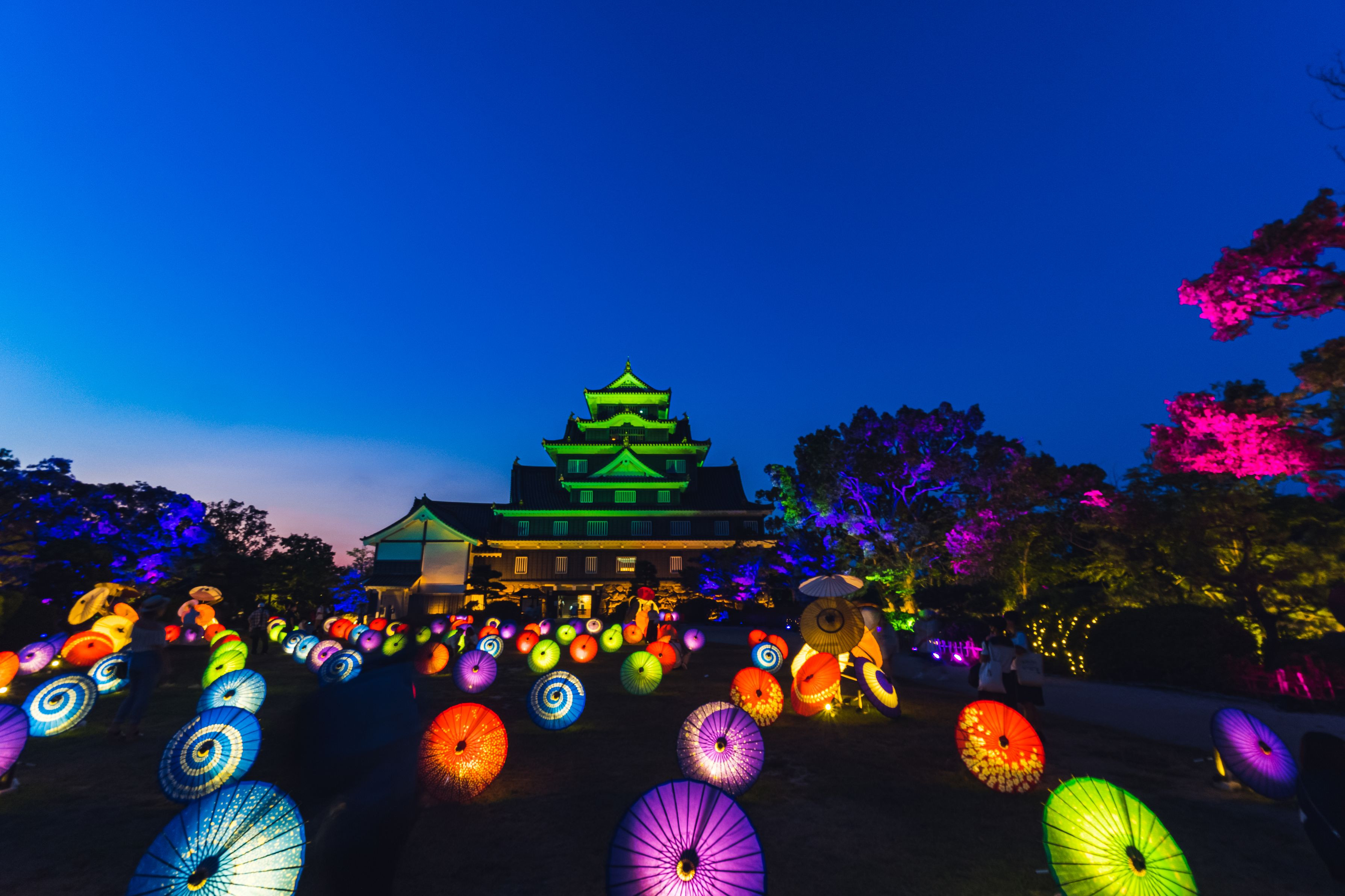 岡山城のライトアップイベントです。