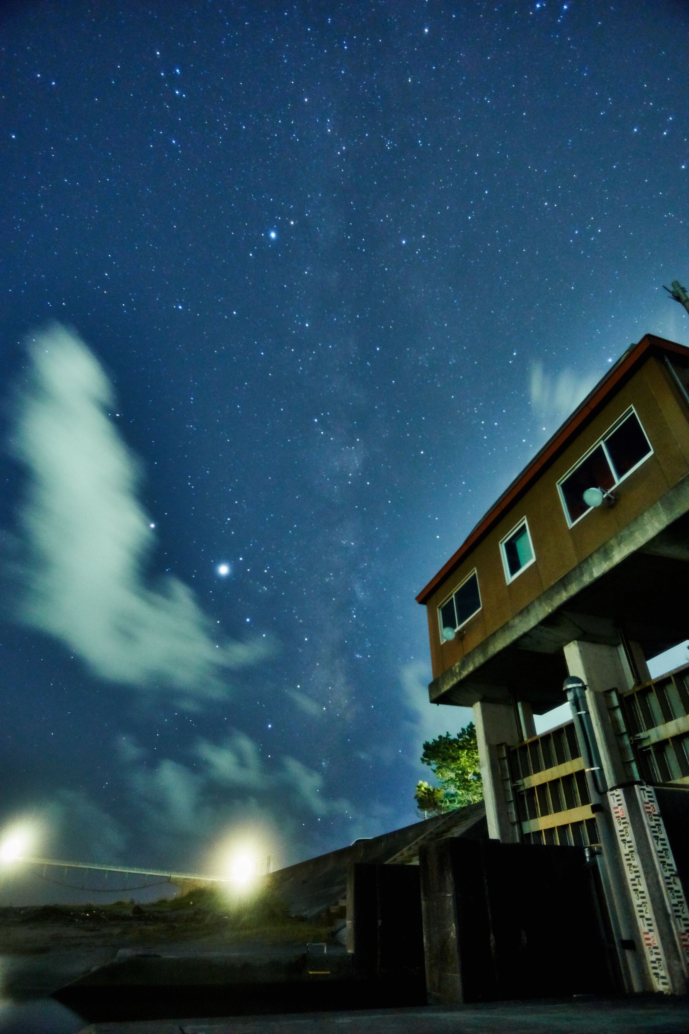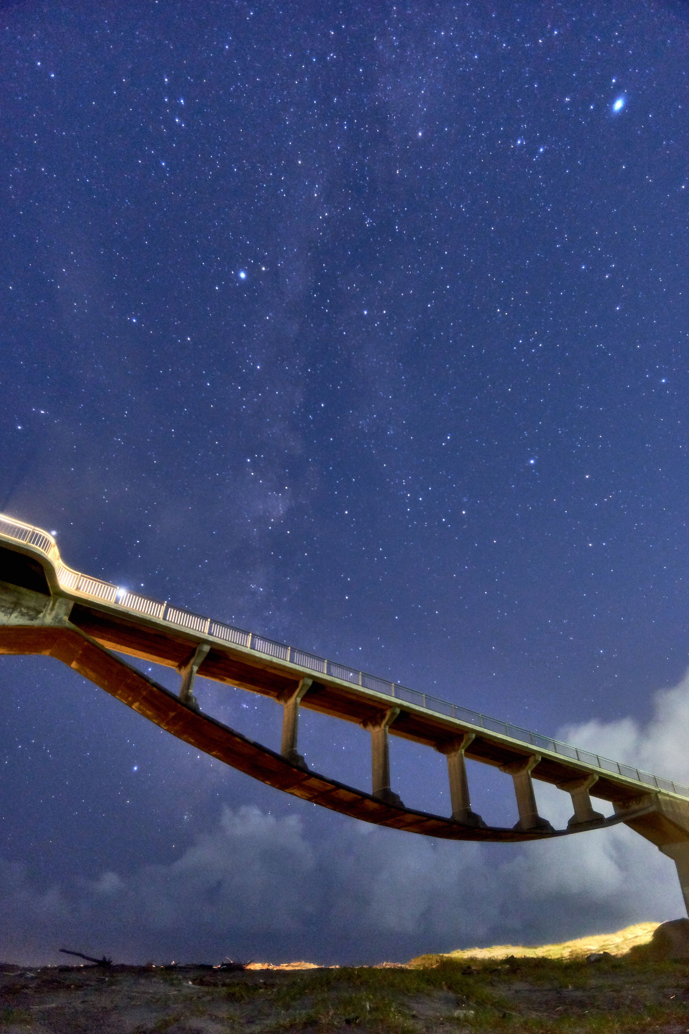 ほぼ2年ぶりくらいの天の川撮影でした・・・。 現地に向かう中で土砂降りの雨に見舞われましたが現着までには上がりホッとしました。以前訪問した時の橋は工事中でしたが、今回はすでに終わっていました。 橋の向こうは海なのですがけっこう荒れているようで靄がかかっていて肉眼では確認しづらかったのですがなんとか撮れたみたいです。1枚目を撮影した後に悲劇がおきました・・・・。