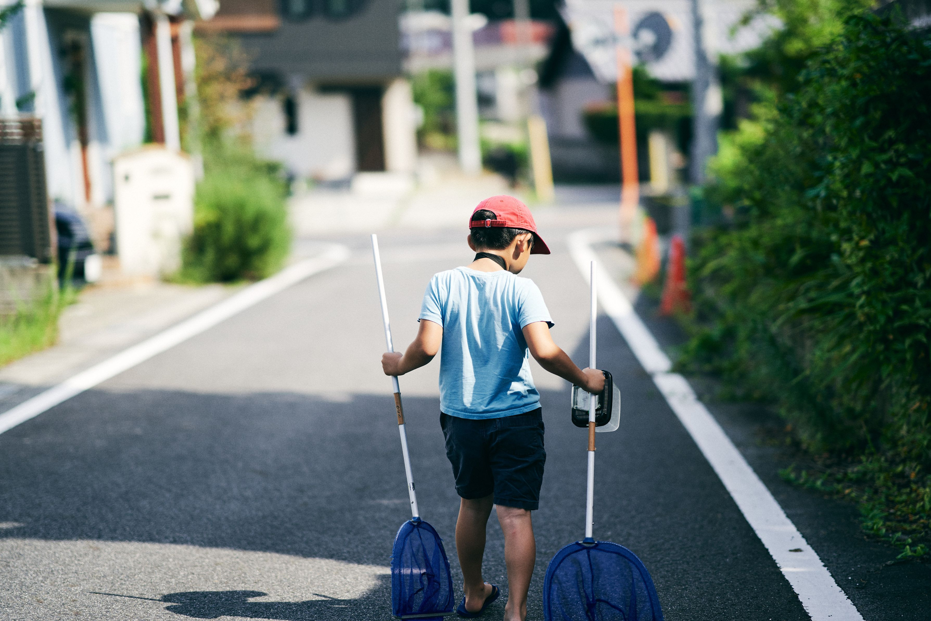 川に生き物を捕りに行くときには必ず二本網を持っていく息子。