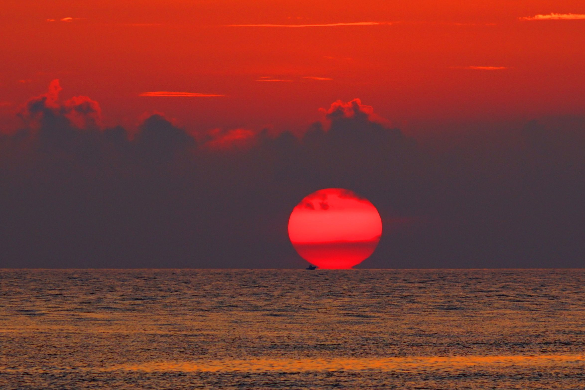 酒田沖に沈む太陽です。 ガス惑星の木星や土星のようですよね。(´ー`)