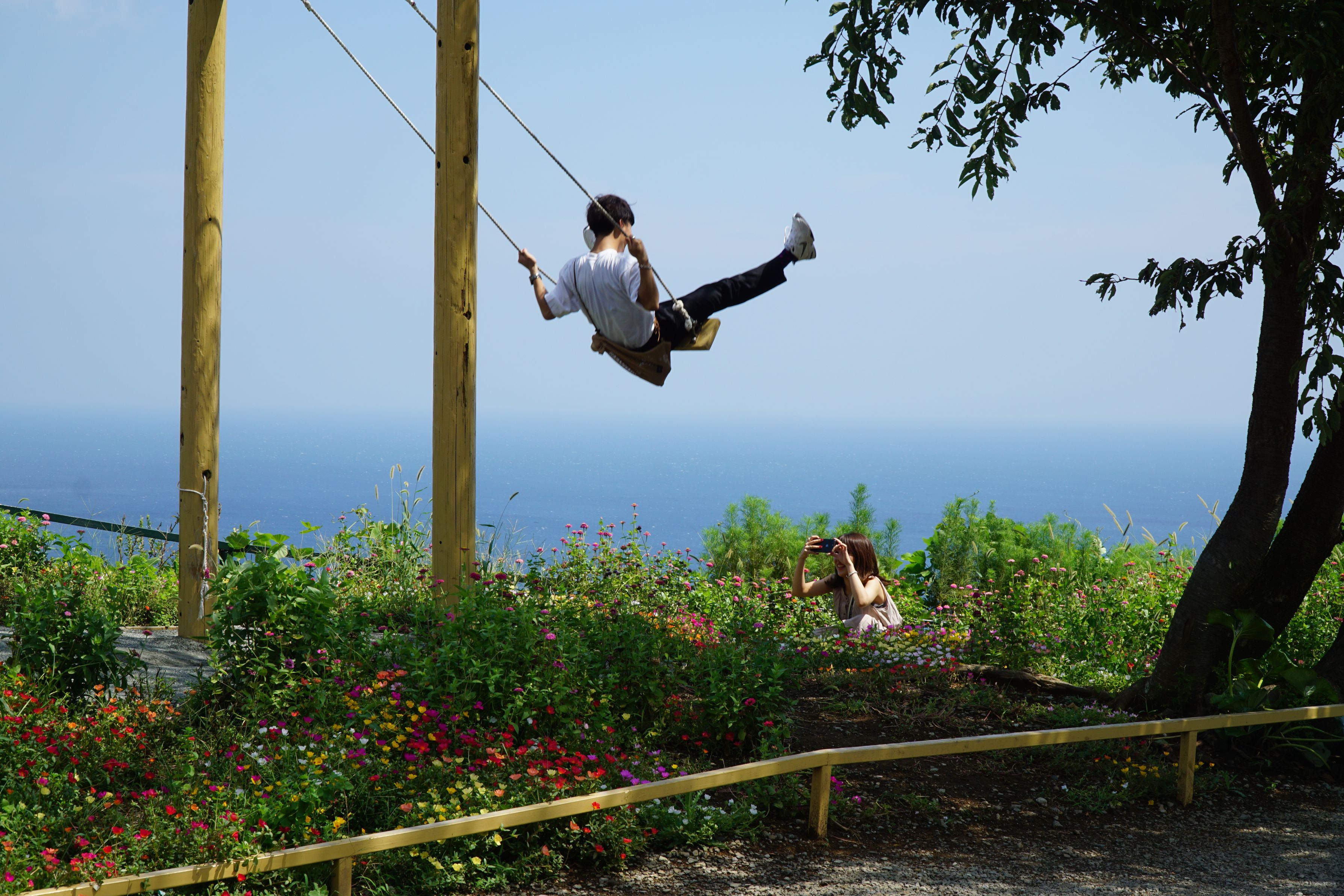 若いカプルがブランコしながらも撮影しましたので、レンズを、むけました