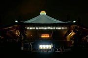 青くライトアップされた日本武道館