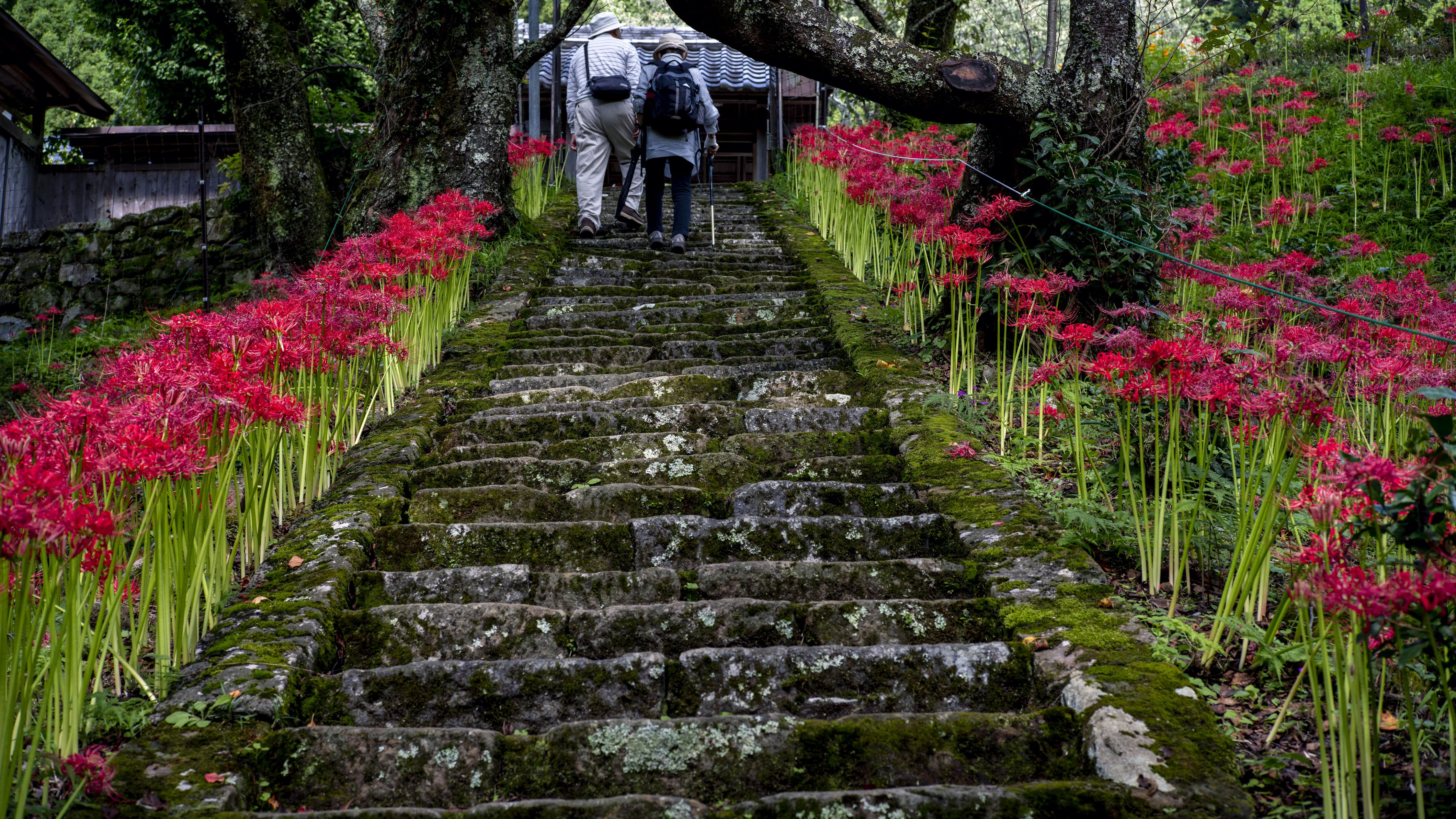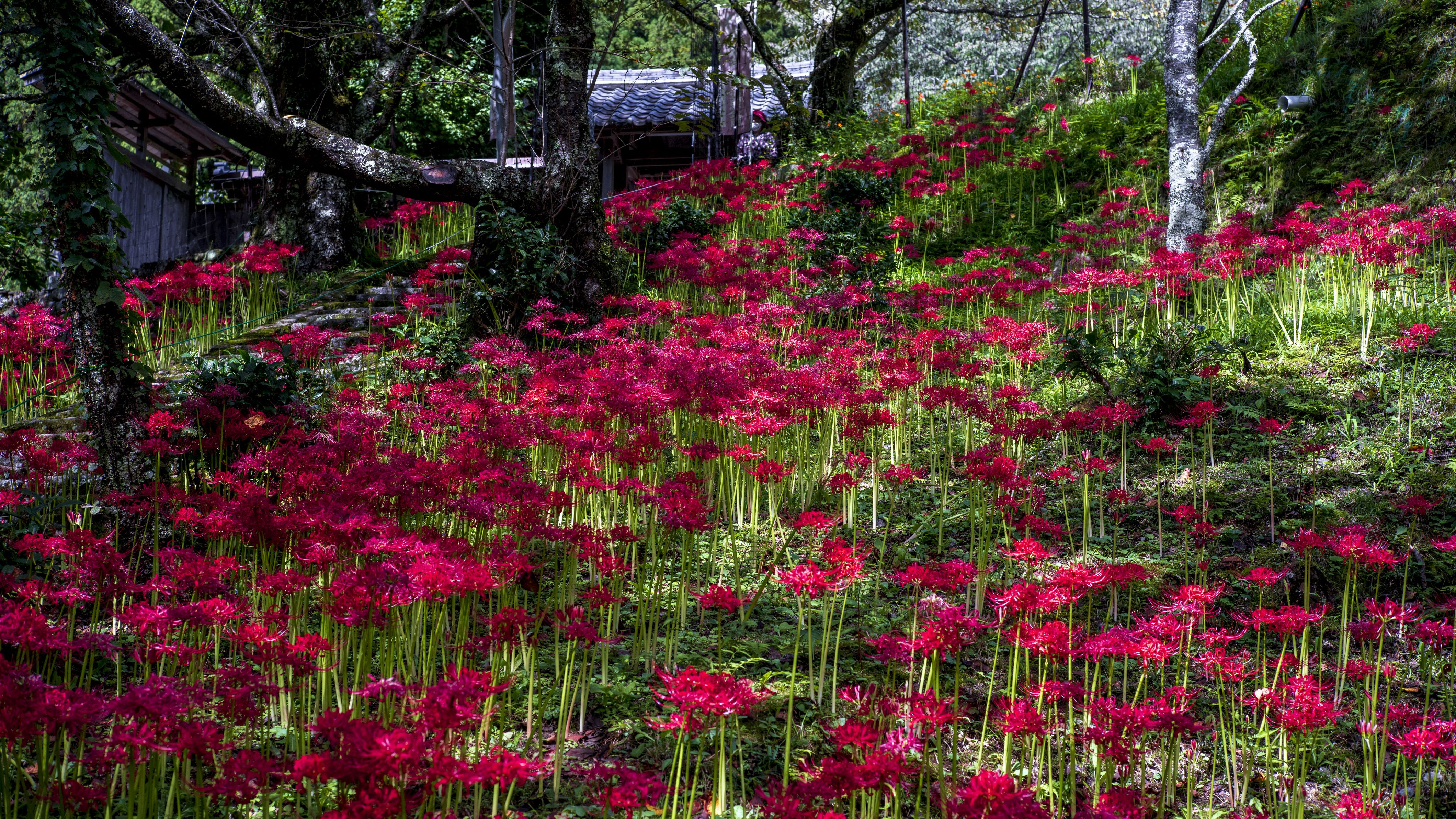 奈良県宇陀市の佛隆寺。参道の両側に広がる彼岸花が壮観でした。 記載のないレンズは50mm f2のオールドレンズです。