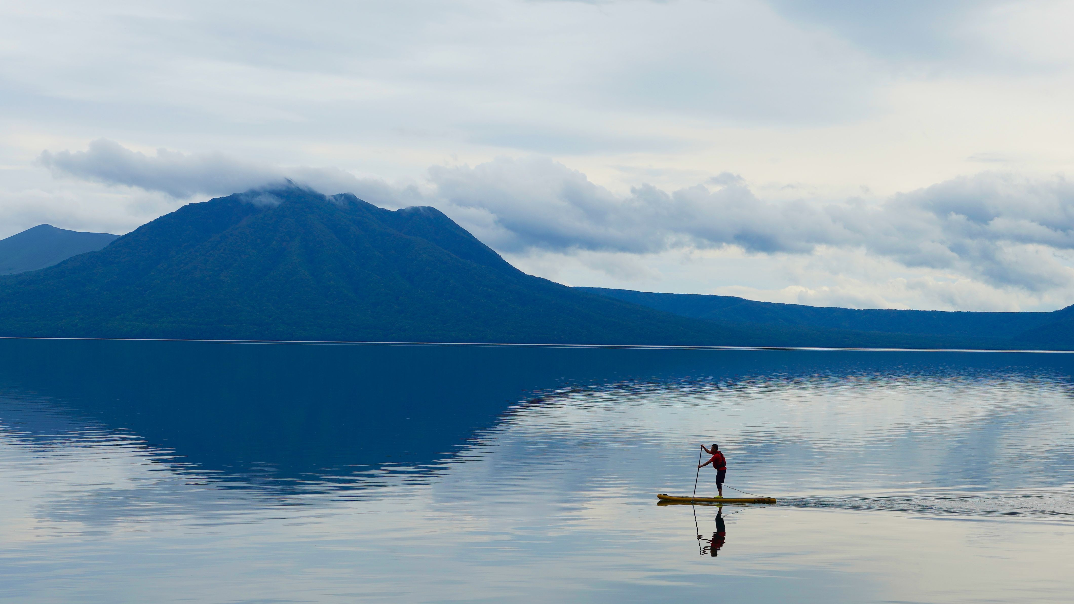 支笏湖湖畔でスタンドアップパドル・サーフィンに出会った。