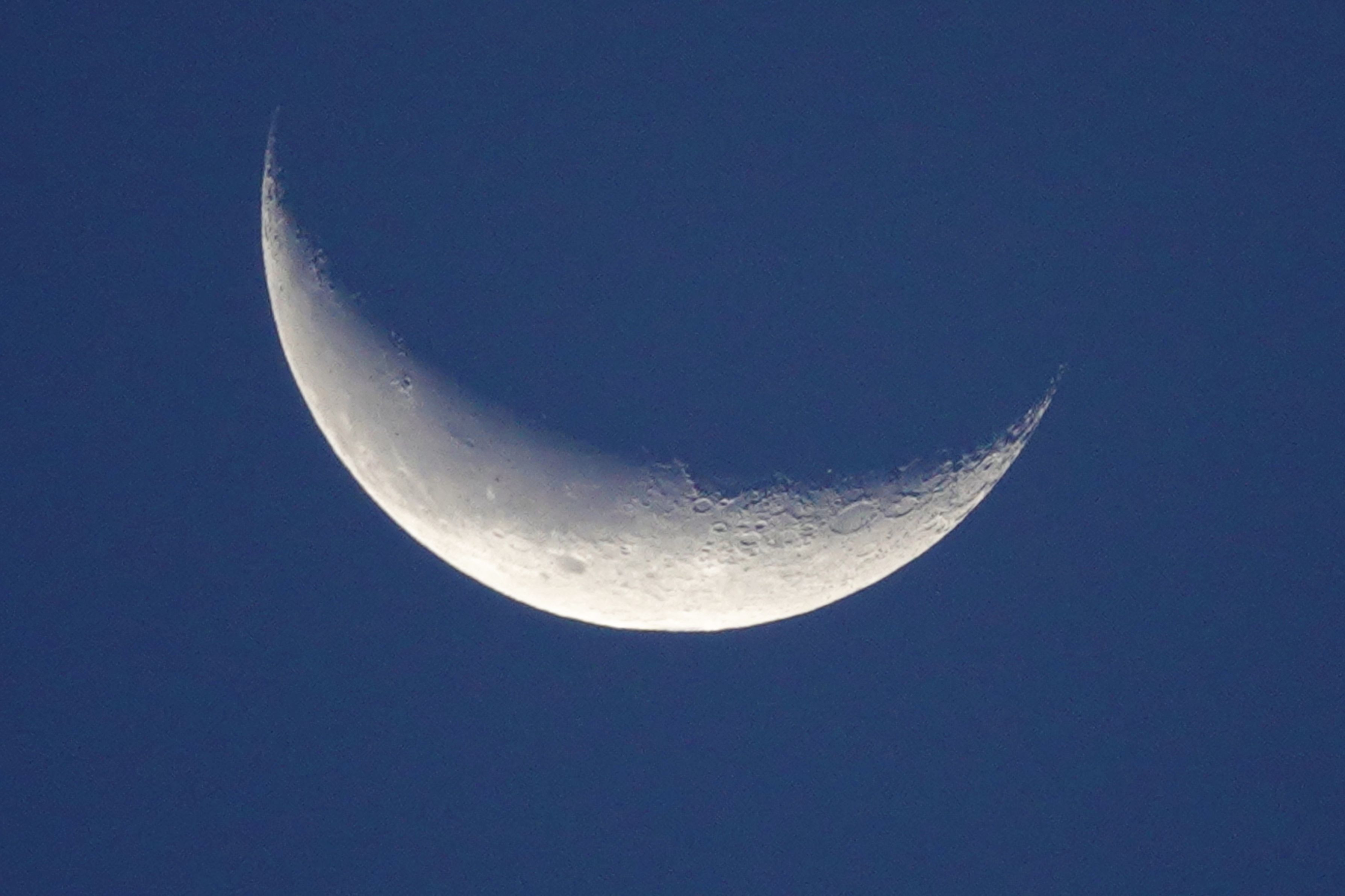 日ノ出直前の中天(10時ごろ)の 綿雲が去来する隙間に淡く光る