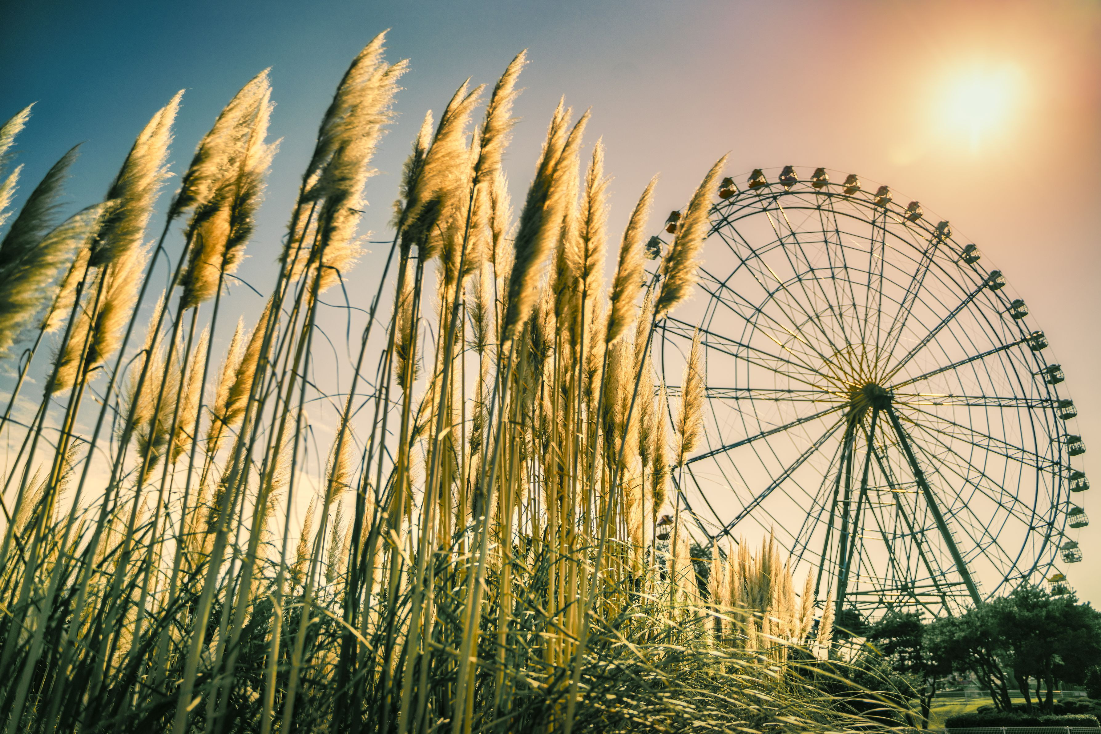 ぐっと秋らしくなってきましたね。 国営ひたち海浜公園の大草原の片隅にそっと咲くパンパスグラスです。
