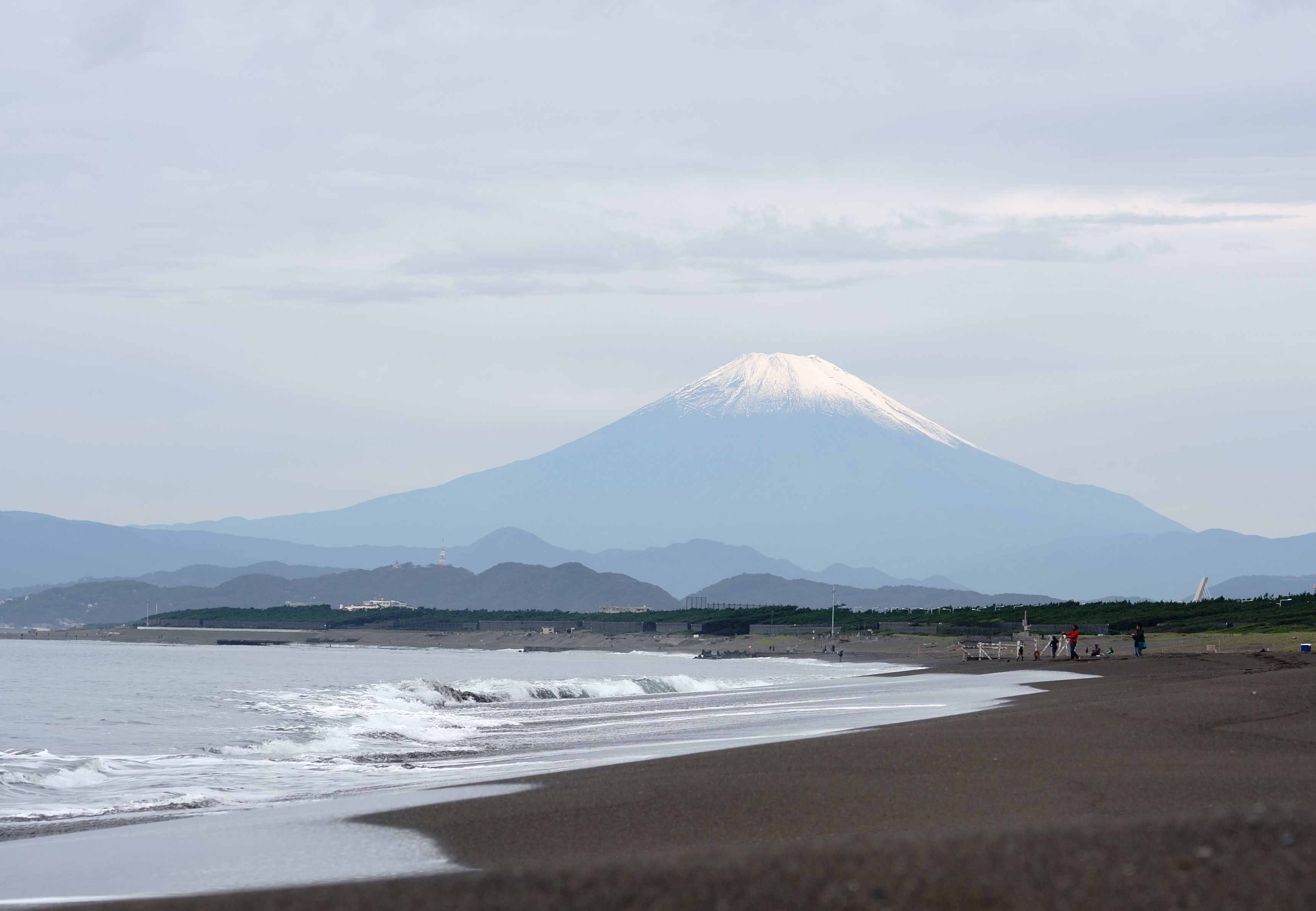 近所の辻堂海岸からの富士山!! やはり冠雪している風景が一番好きです