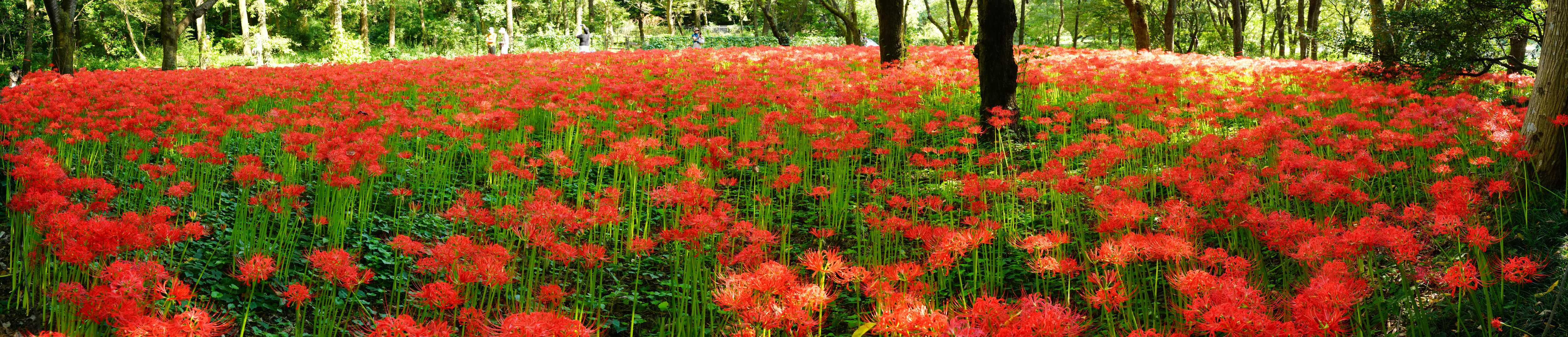 野川公園自然観察園の赤彼岸のパノラマ