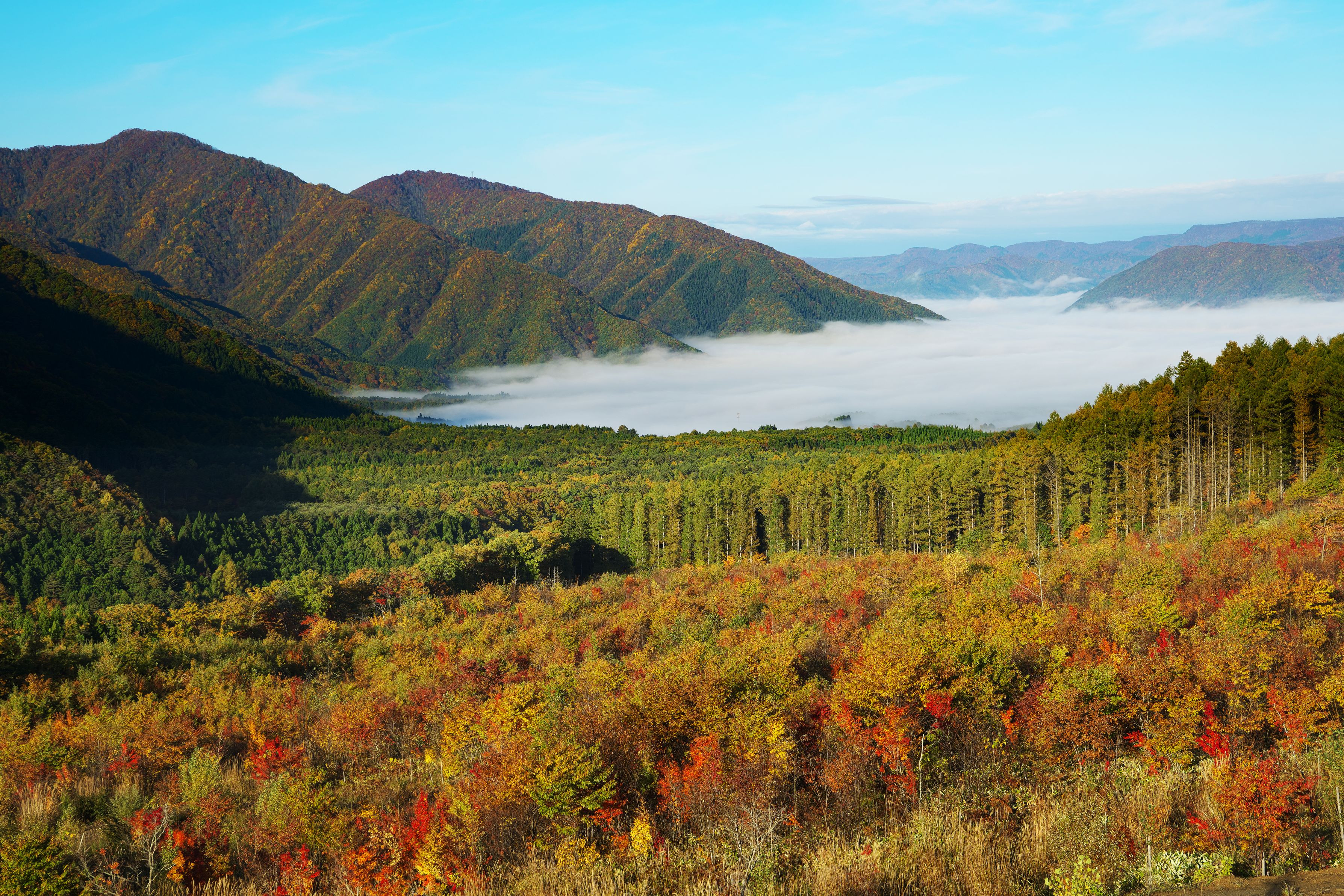 夜中に出発し6時間のドライブで観音沼に到着。眼下には雲海が漂う素敵な光景が入ってきて、疲れを忘れてしまいました。