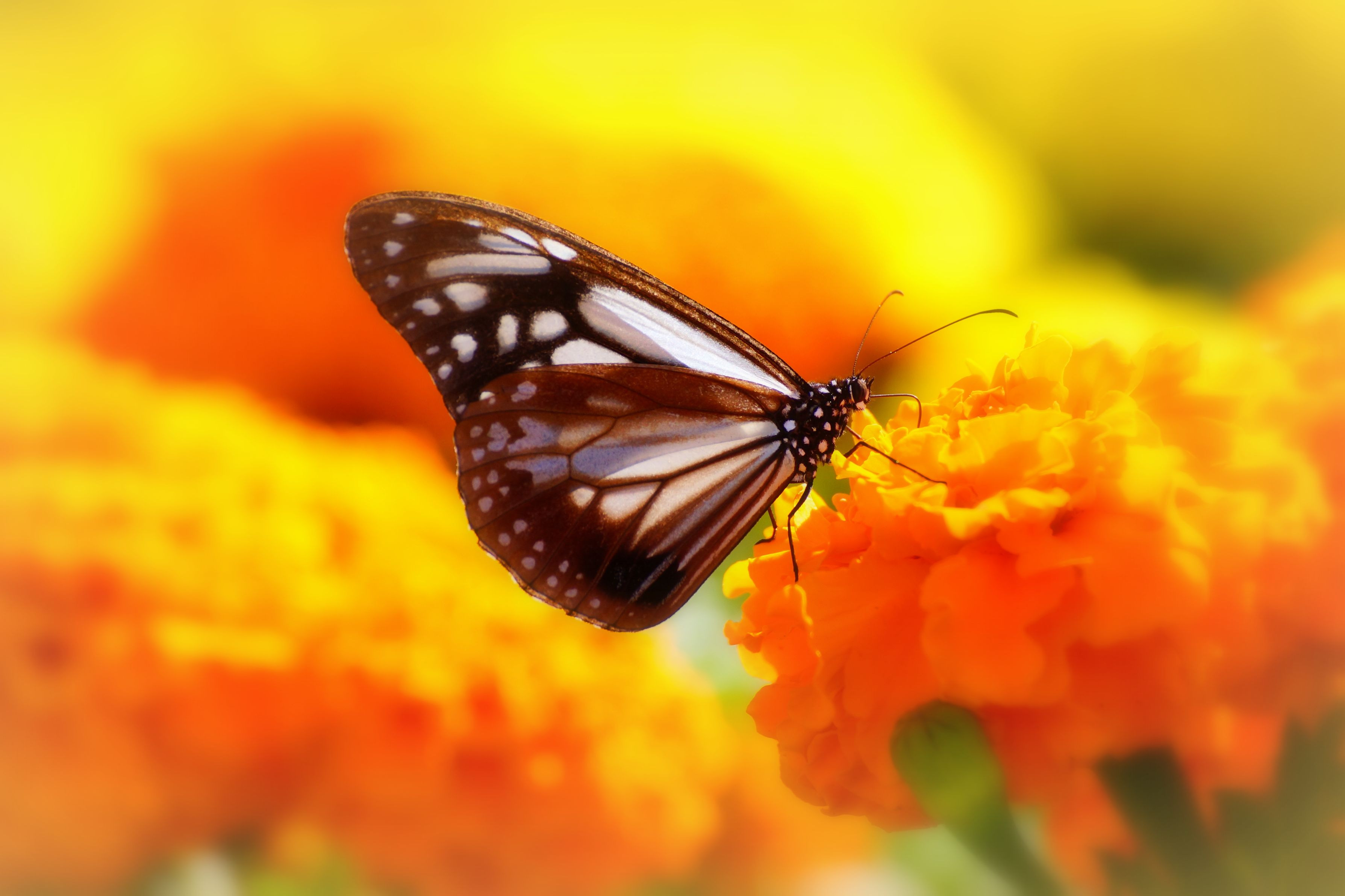 マリーゴールドにやって来たアサギマダラ、フジバカマとは また違った優美さがありますね。