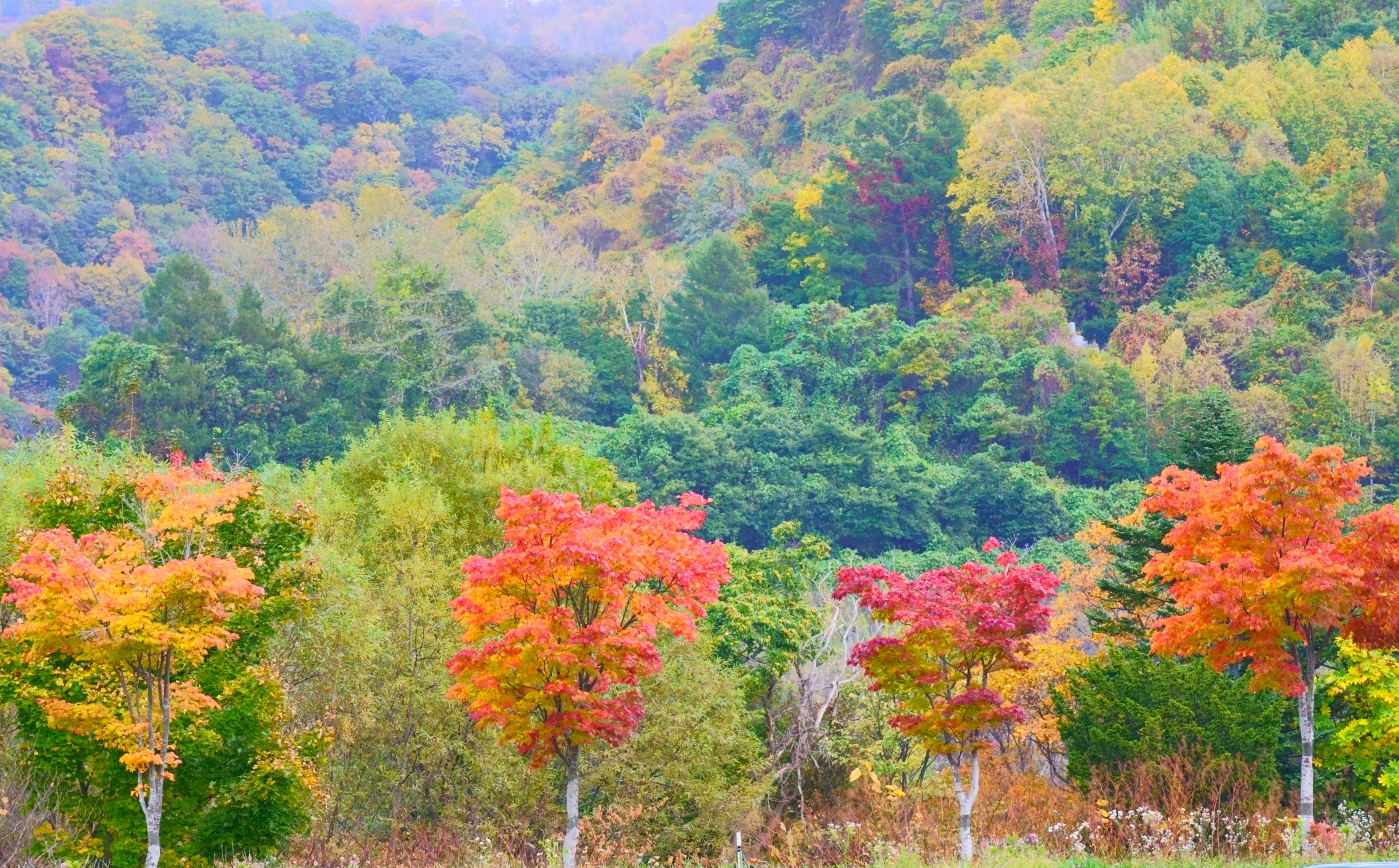 洞爺湖畔の山々はすっかり秋色に染まっていました。