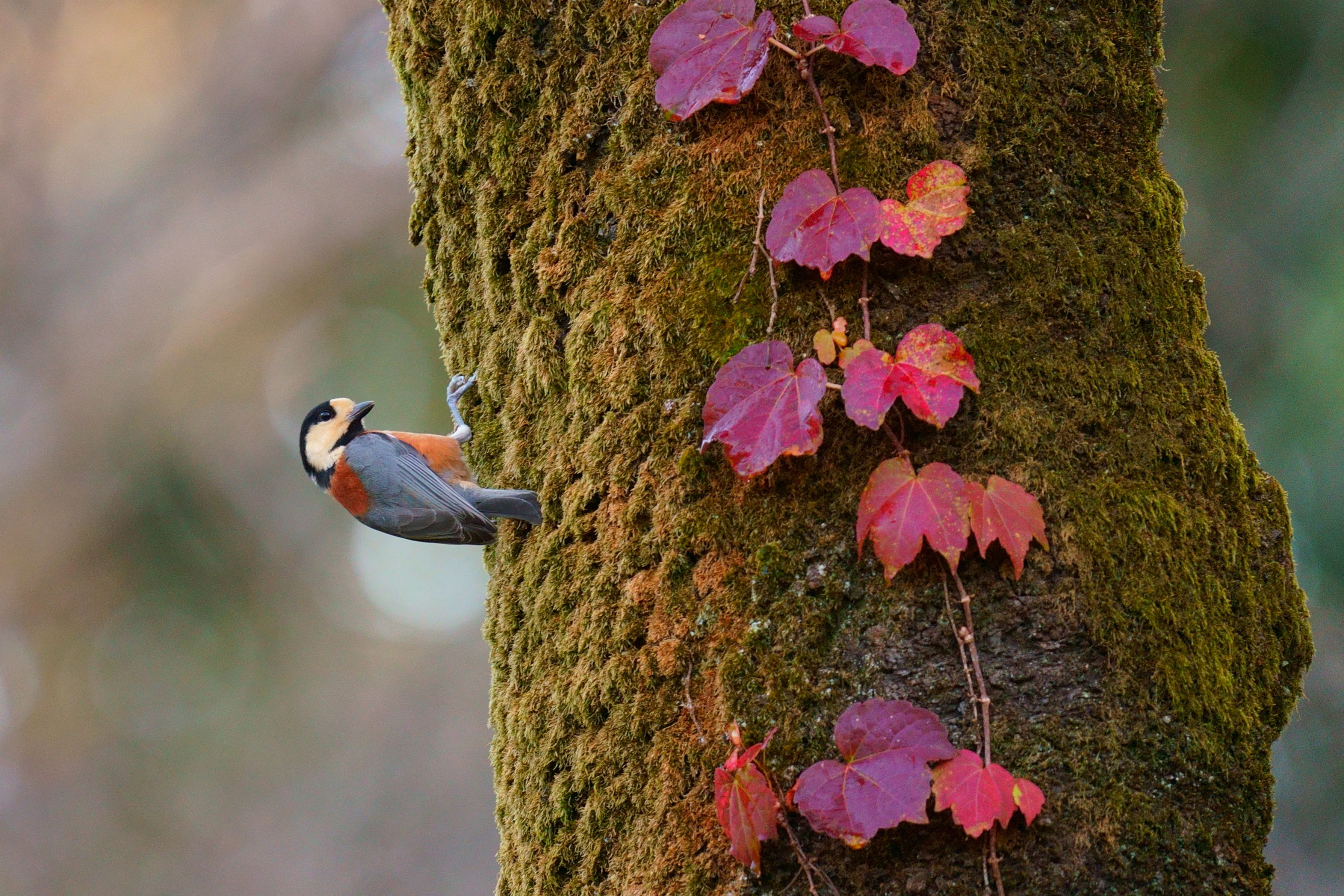 東京も秋深まっています。冷え込み始めた今朝も、林の中ではヤマガラさん元気に飛び回ってました。