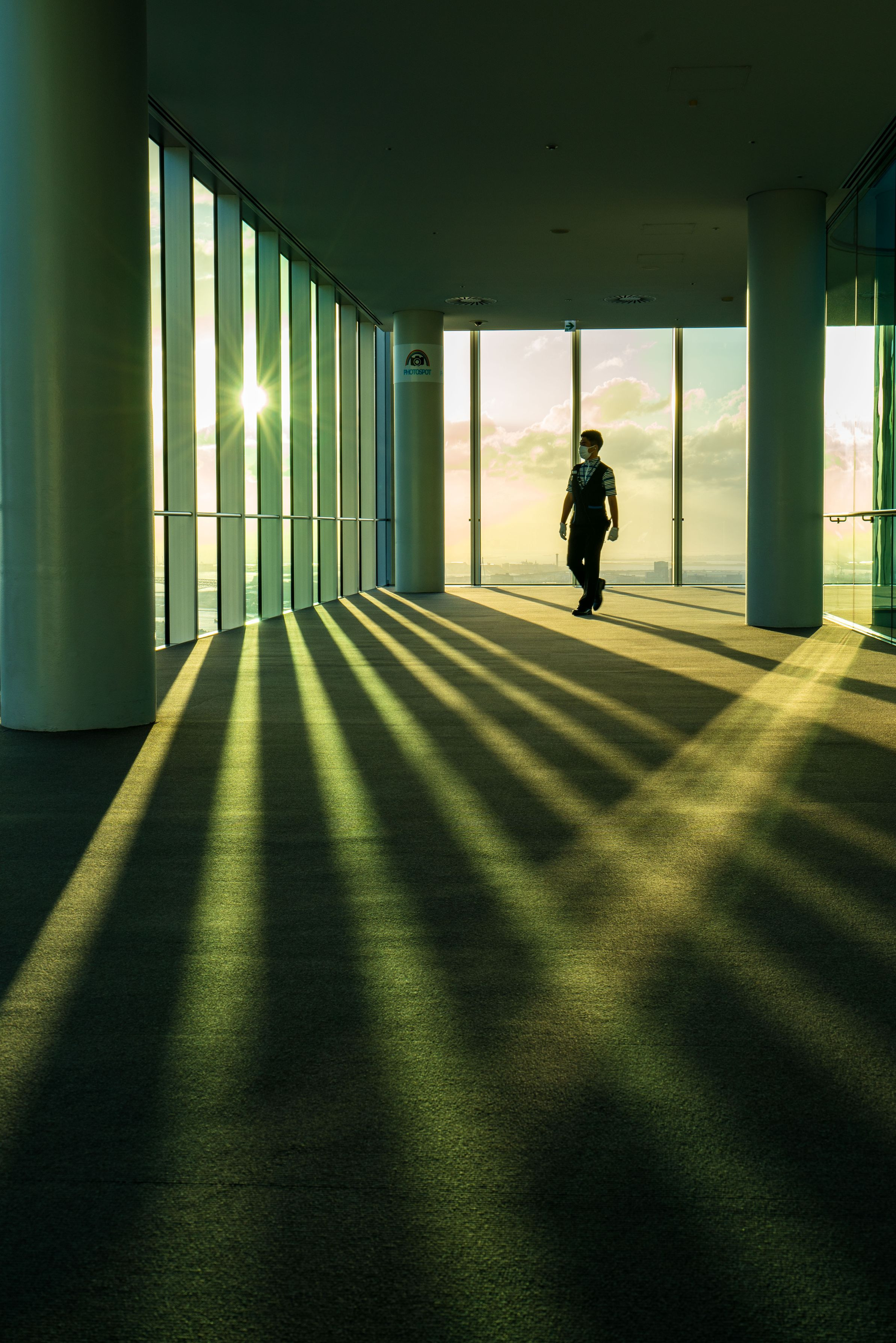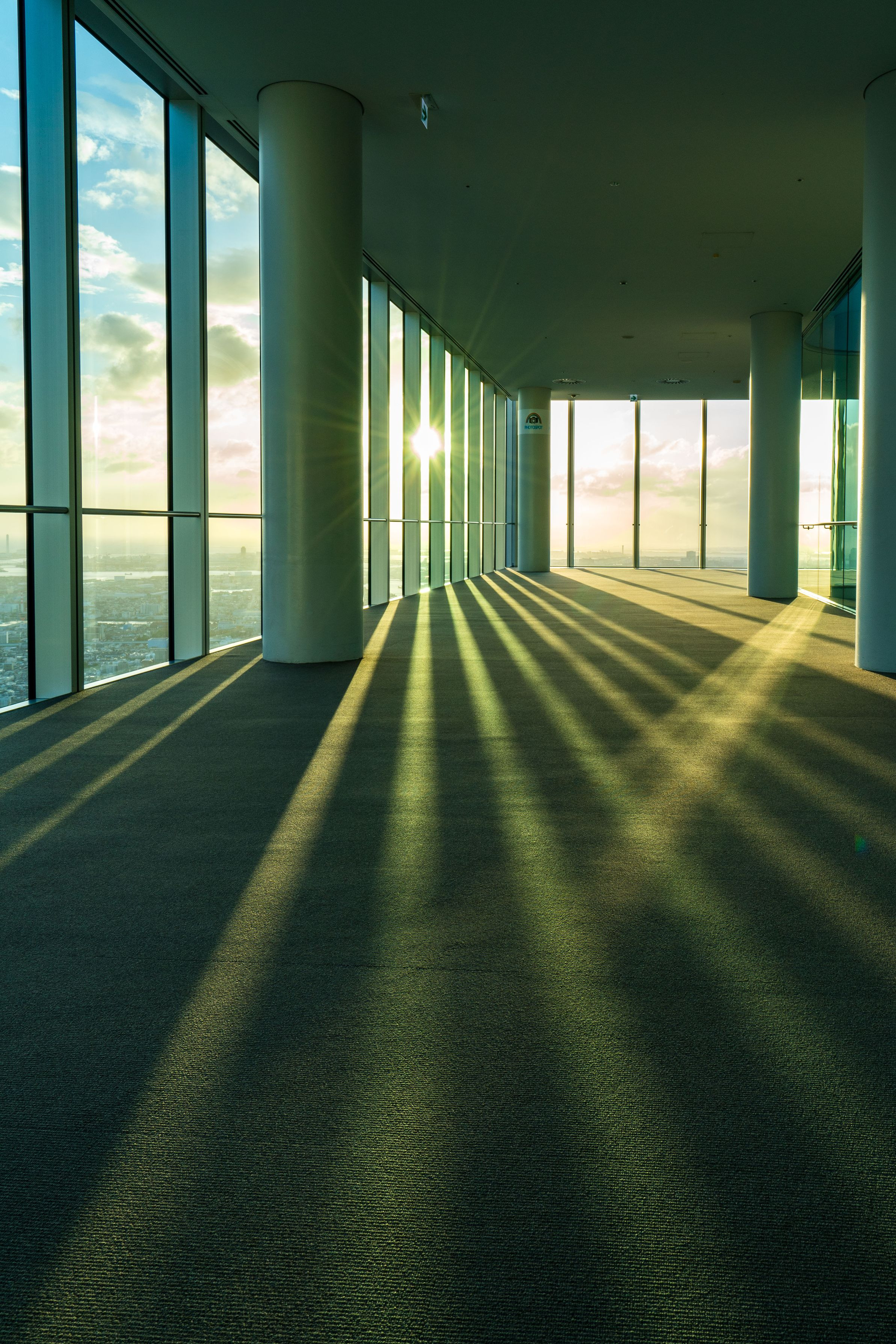夕方近くになり、ハルカスと同じ高さに陽が落ちてきました! 良い感じに陰影が出ていたので、急いで撮影しました。(^^)v