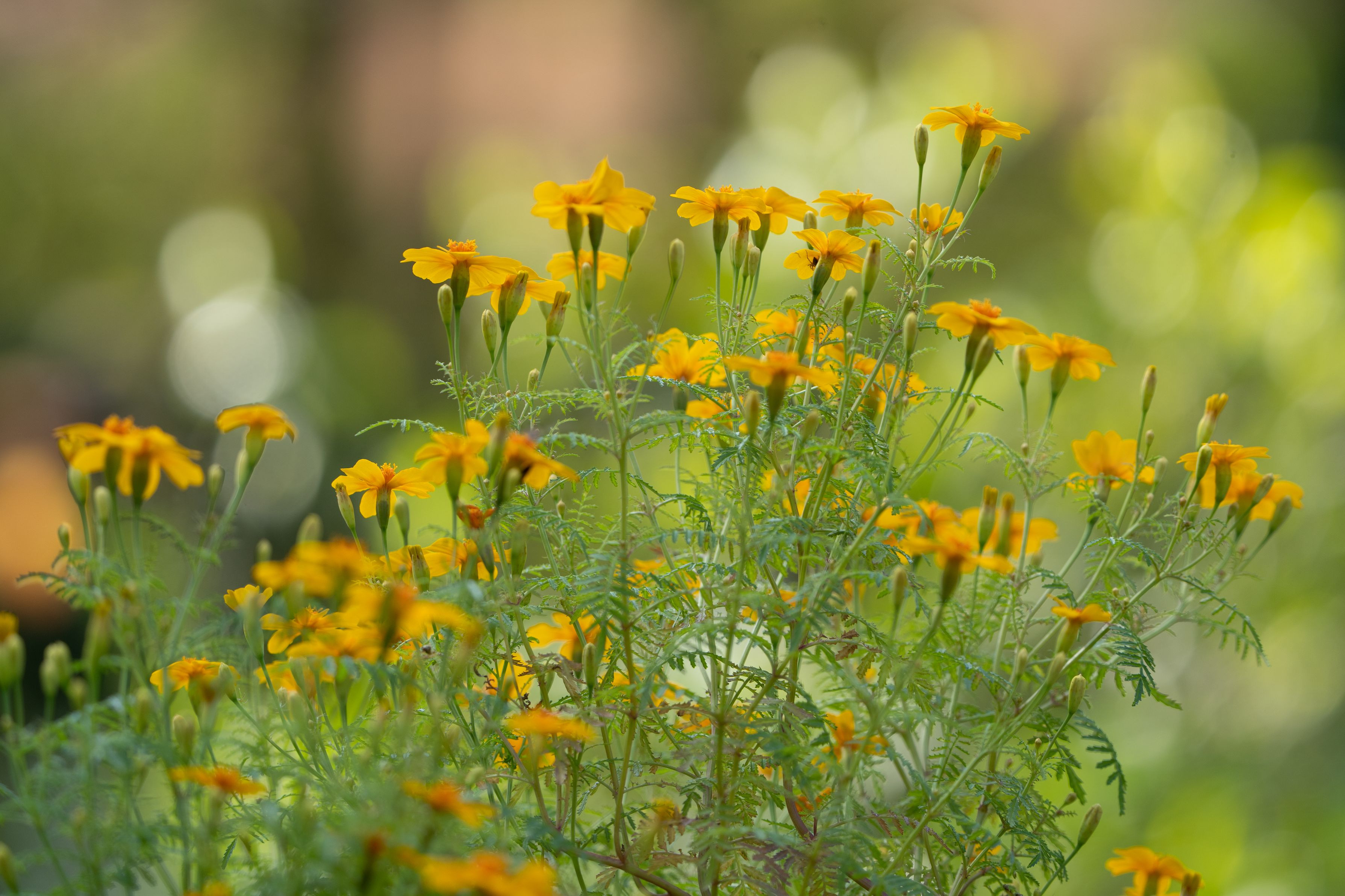 華やかなオレンジイエローに映えるマリーゴールドです
