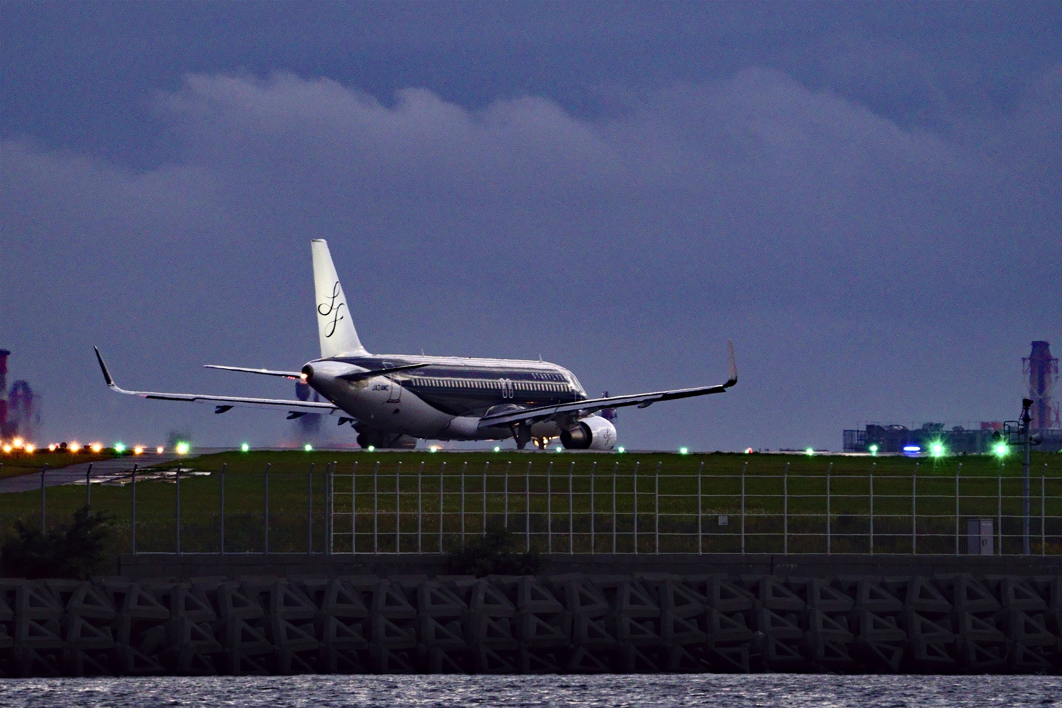 薄暮時離陸のためスタフラの320がBランへ入ってきました