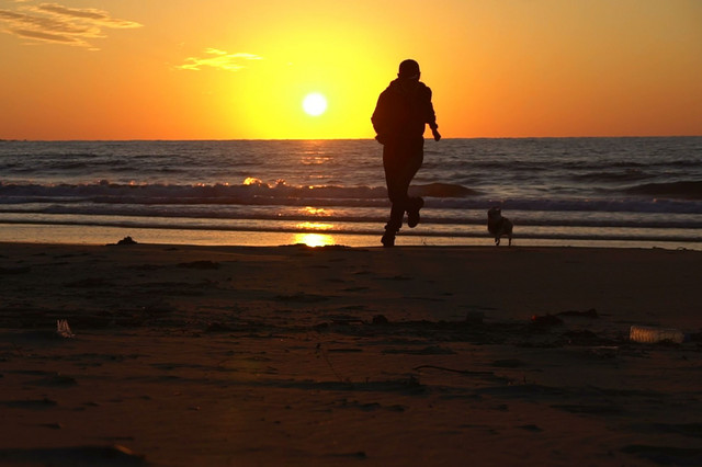 夕凪や 犬と戯る 茜空