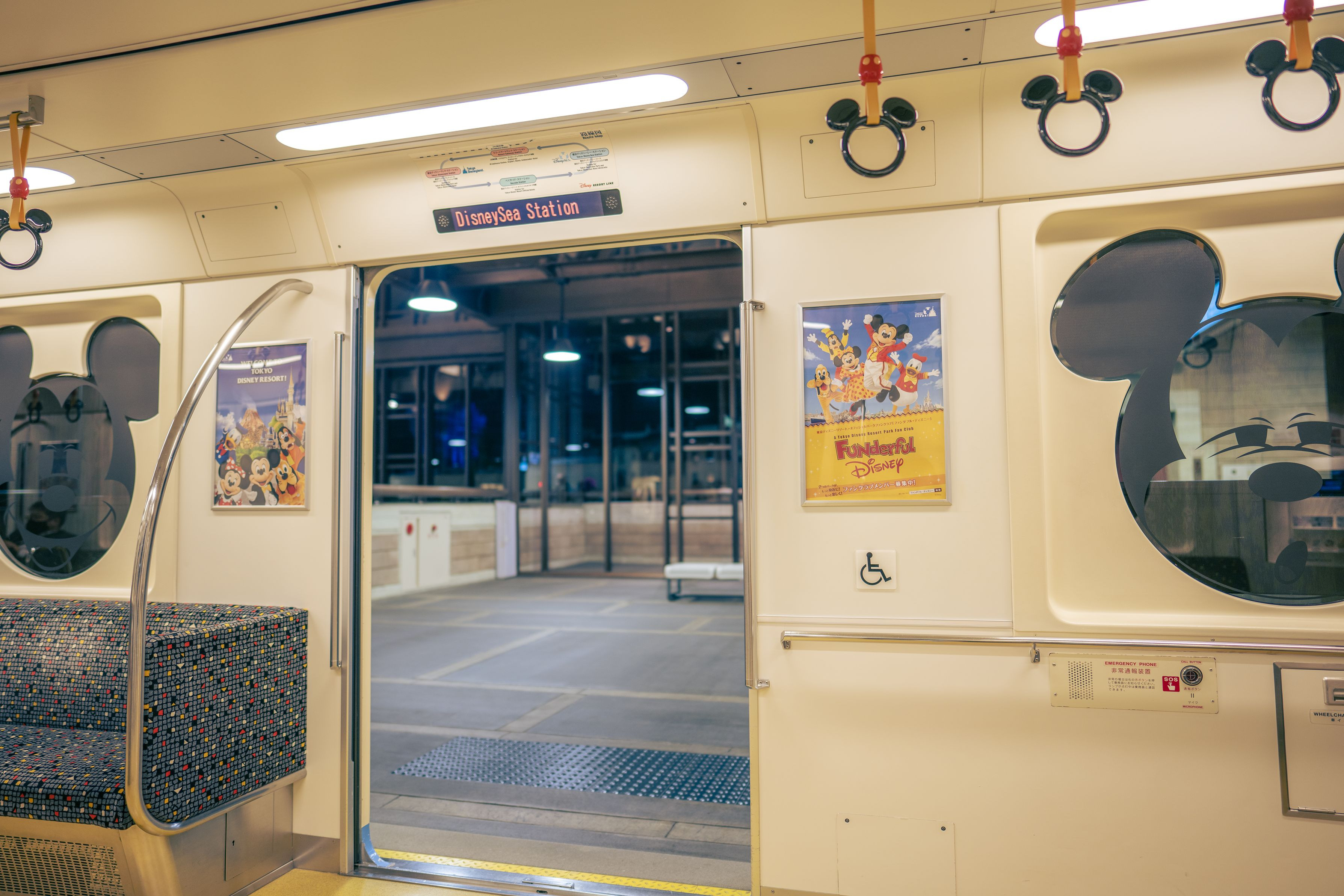 東京ディズニーリゾートラインの座席から撮影しました。 楽しかった一日の終わり、を表現してみました。 扉の向こうの景色がいい具合にボケているところがお気に入りです。 淡い感じ、ちょっと儚い感じ、 電車の温かい空調が伝わる現像を心がけました。