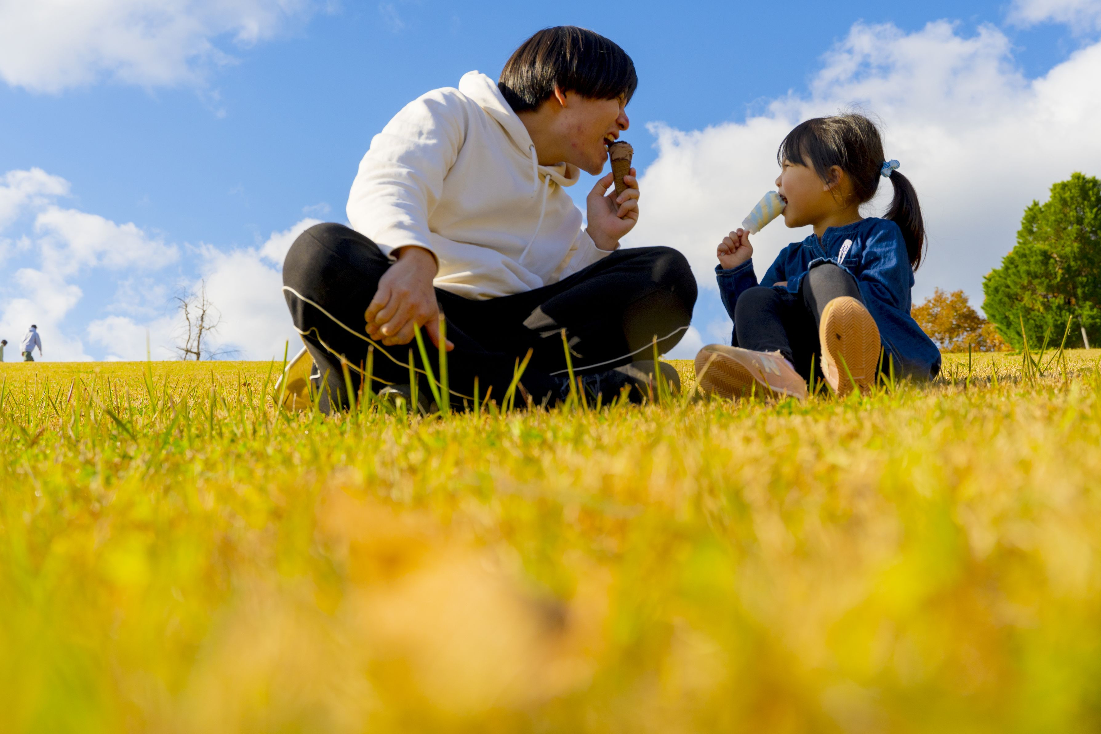 越後丘陵公園で一緒にアイスを食べました。 仲良し親子ですよ! セルフポートレートしてみました。 良い雰囲気に撮れたと思います!