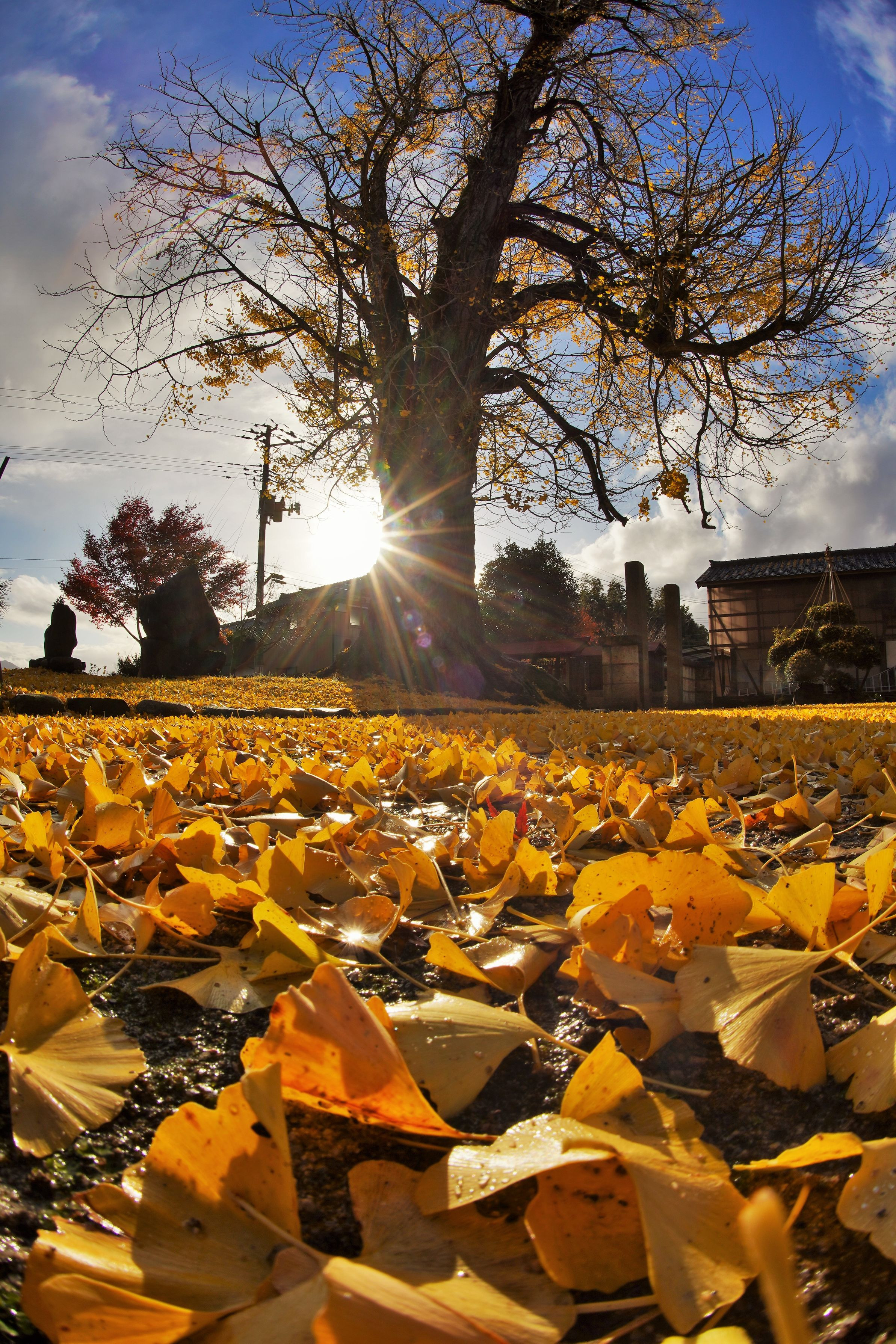 新潟県五泉市にある「禅定院のイチョウ」です。落葉に西日が当たって映えていました。 この地域にはイチョウの巨樹が多くあり、私も何ヶ所か巡りました。ただし写真写りが良かったのは、ここだけでした。