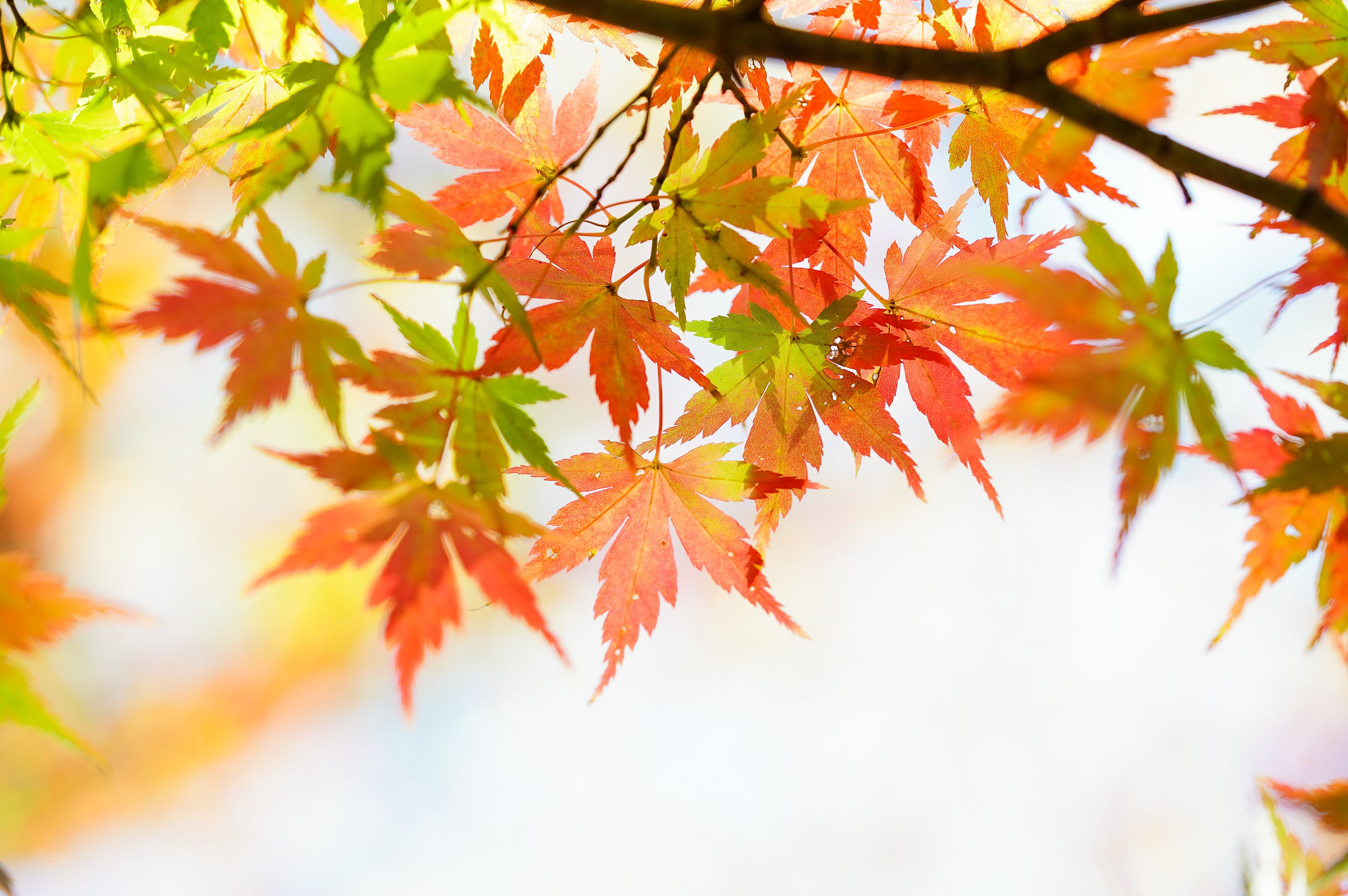 緑、黄色、赤とカラフルな紅葉がキラキラ輝いていました**