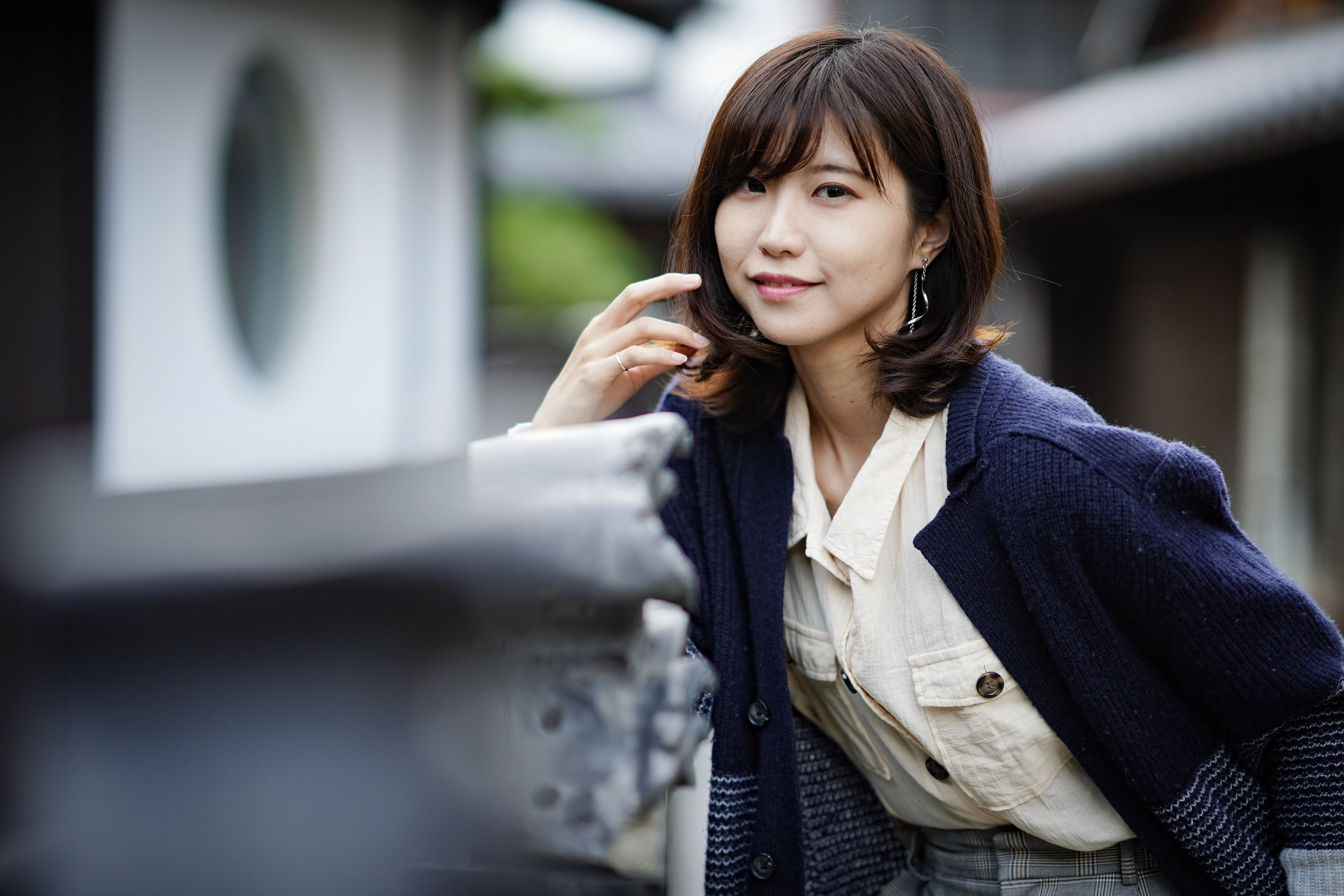 モデル: いろは 広島県御手洗町並み保存地区 町並みの情緒にひたりながら歩く 気取らず自然に町並みに溶け込むよう