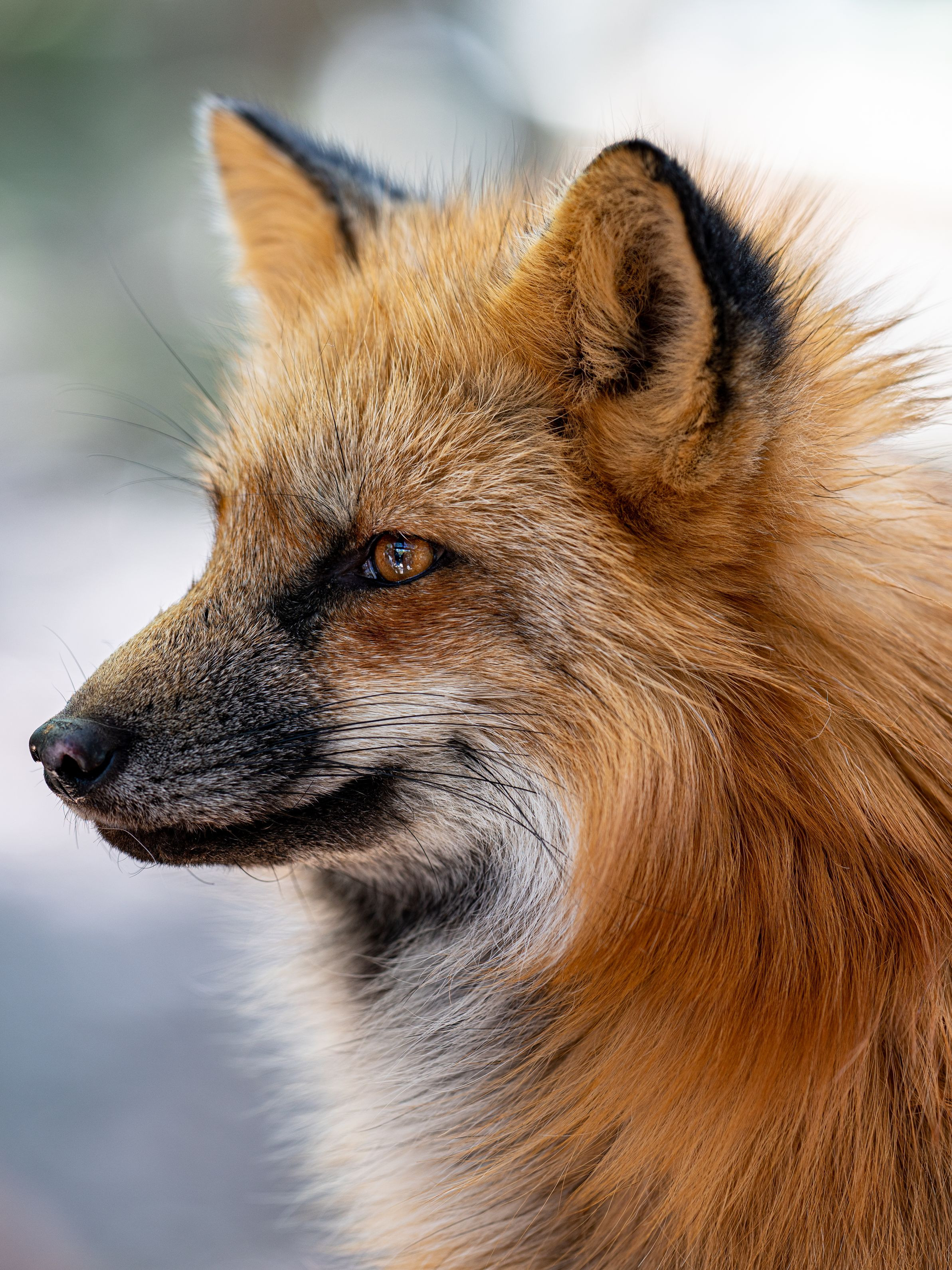キツネの横顔がとても凛々しく決まっていたところを撮りました 瞳に光が差しているところが気に入っています