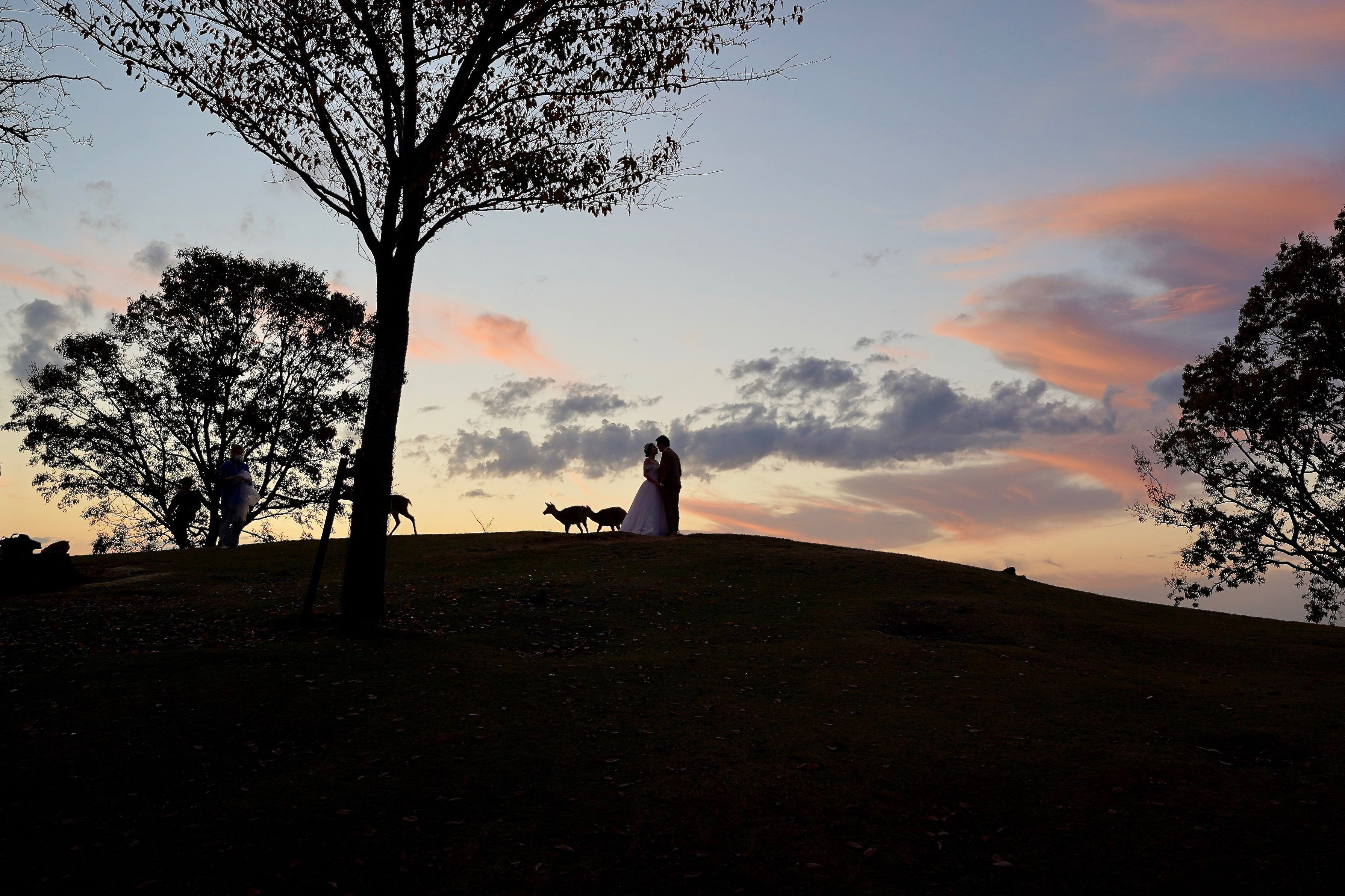 鹿が居るのは、奈良 若草山の山頂だからです(笑)。 結婚アルバムの撮影に来られていた新しい御夫婦を 私のアルバムにも…。