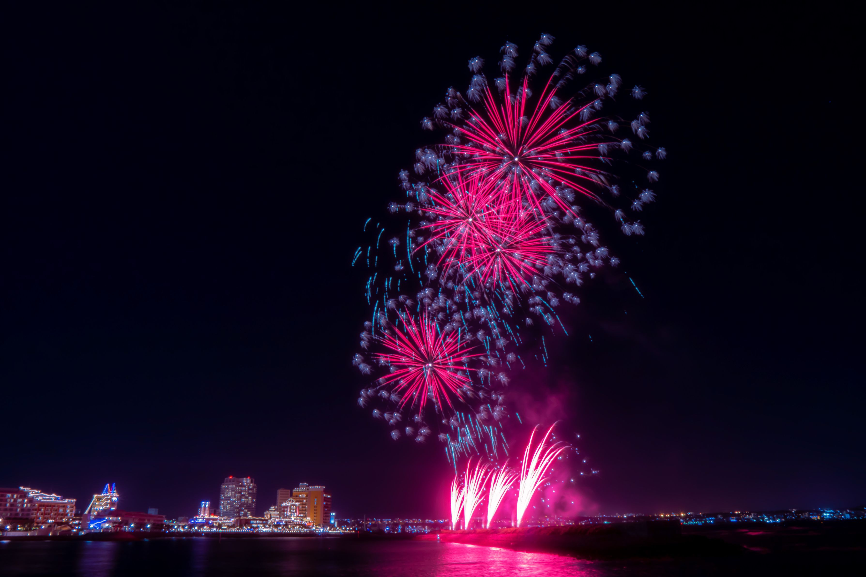 毎週土曜日8時より、新型コロナ収束の願いと医療従事者への感謝の気持ちが込められた花火が打ちあげられています。 初めての花火撮影、ピントが…