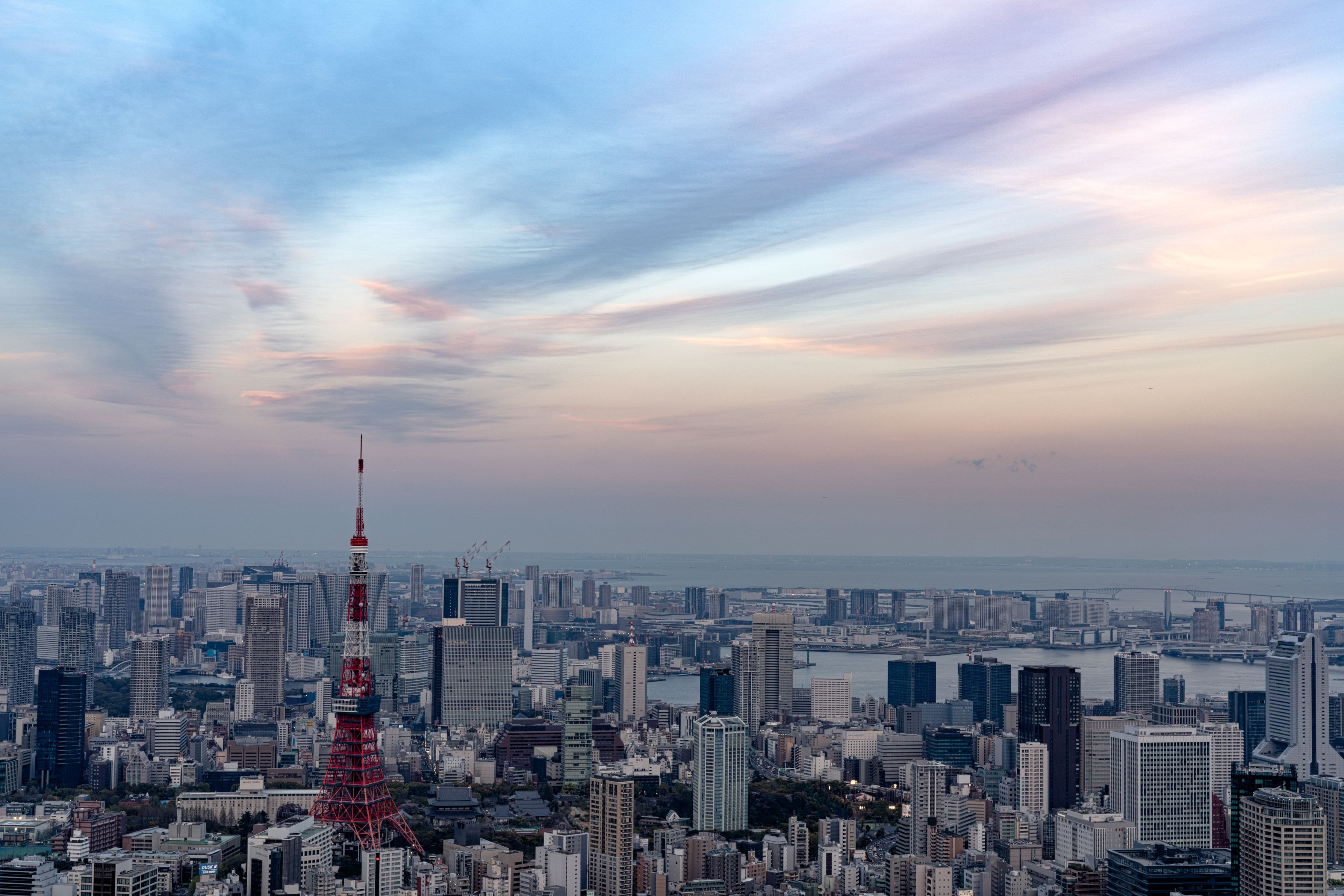 東京の街並みとカラフルな空の色の対比を撮影しました