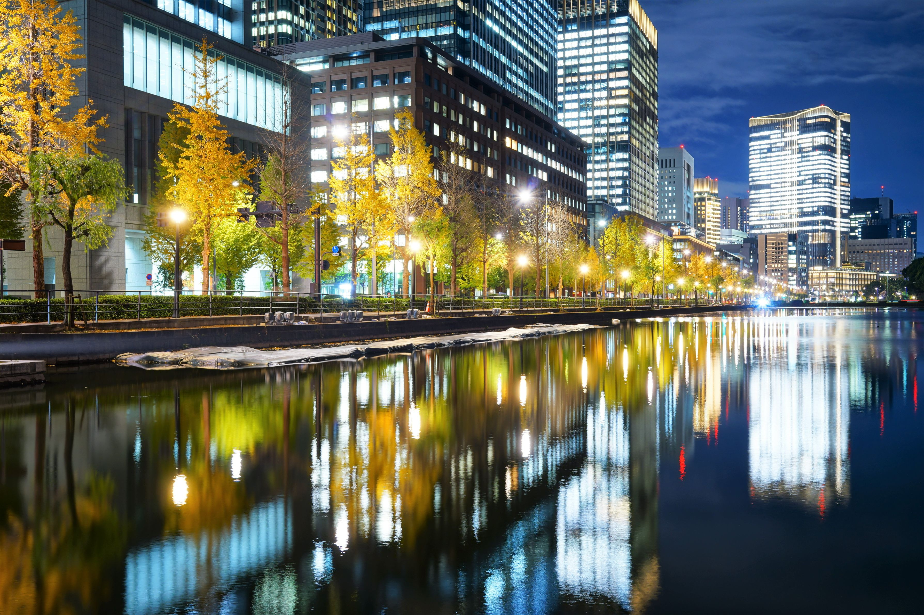 行幸通りから見た夜の銀杏
