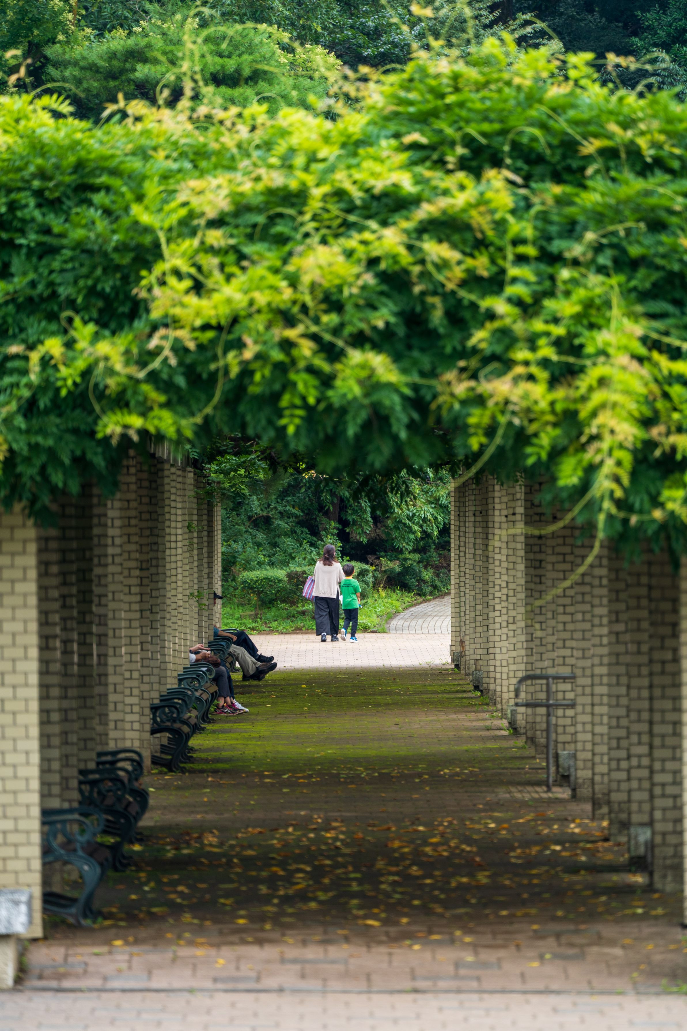 藤棚の下で涼んでいる人たちです。