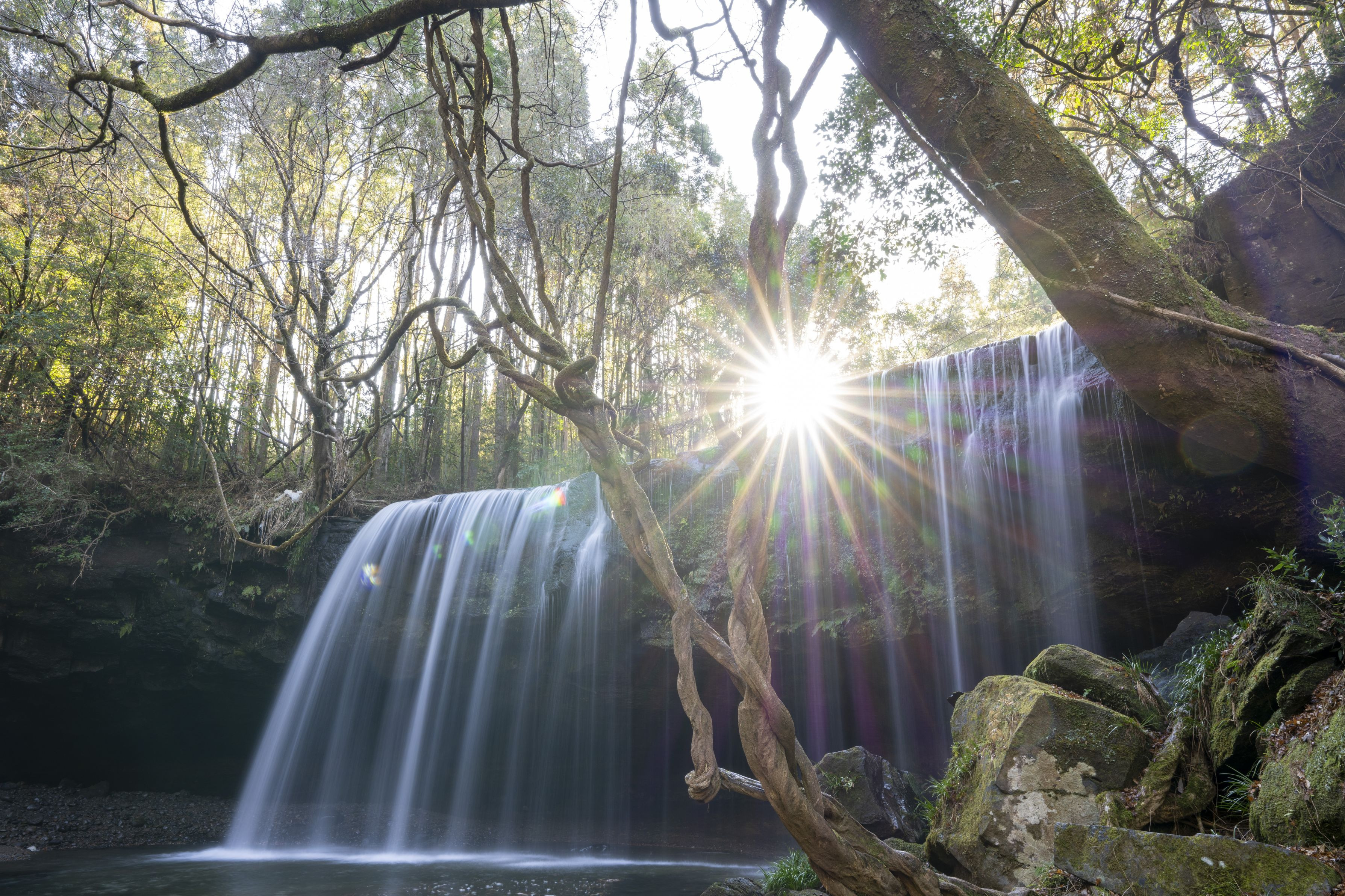 熊本県小国町鍋ヶ滝 このタイミンングのために1時間以上待って、待ってましたとパシャリ。まずまずの構図で撮れたと思います。
