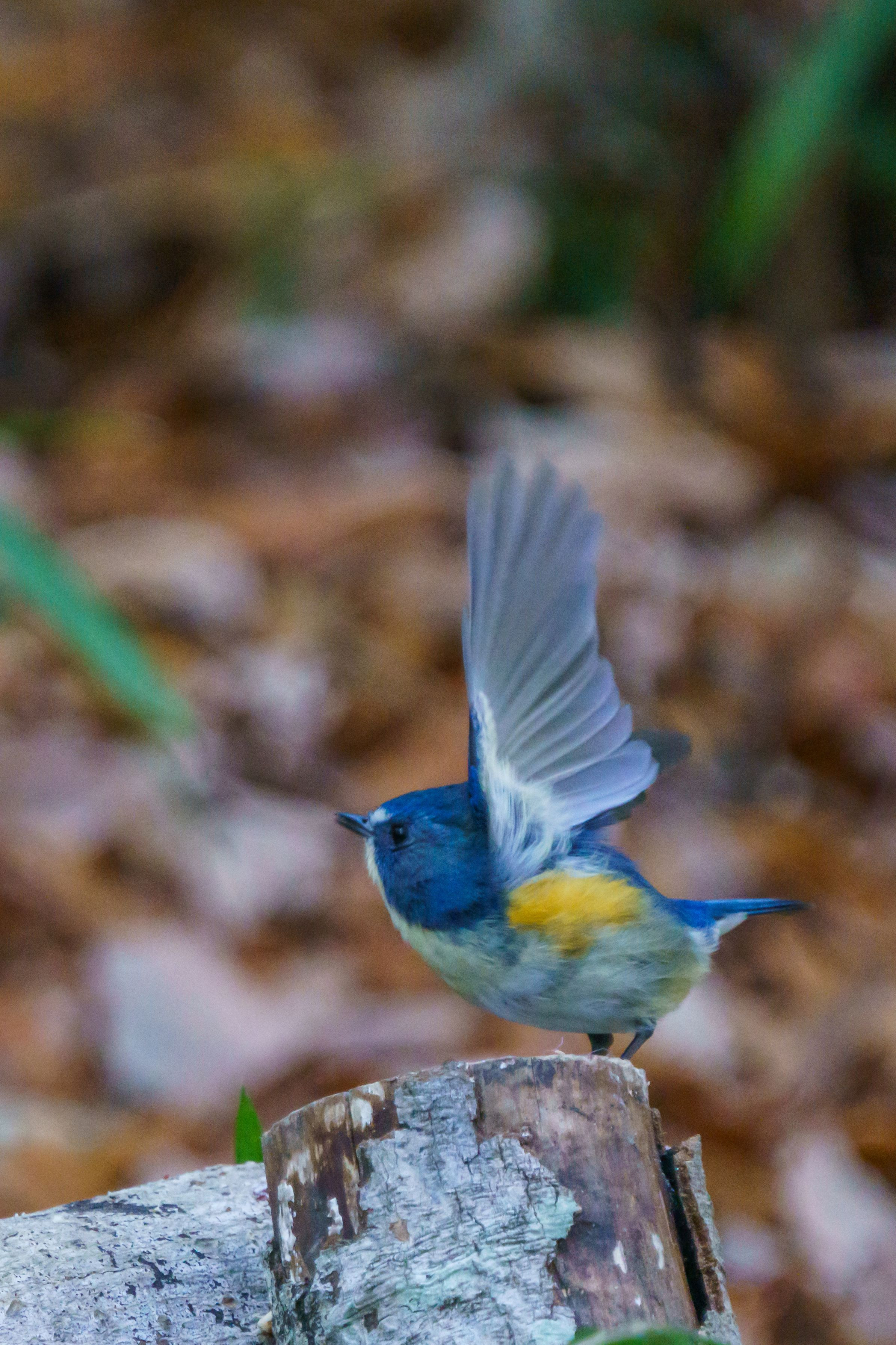 餌付けされているルリビタキ君..ちょっと、幸せ太り?