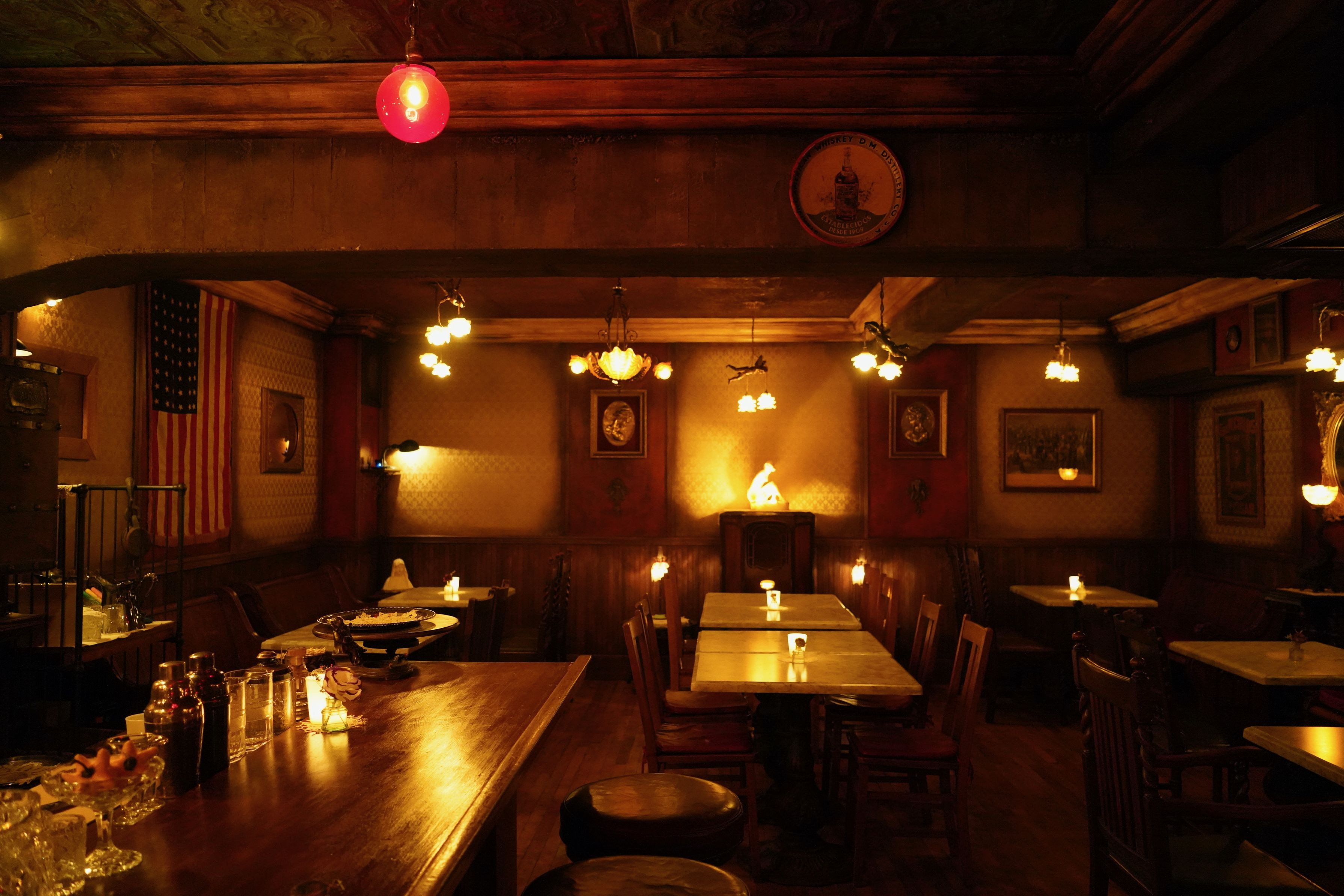 アンティークなバーの店内です。薄暗い店内の感じが海外のようです。