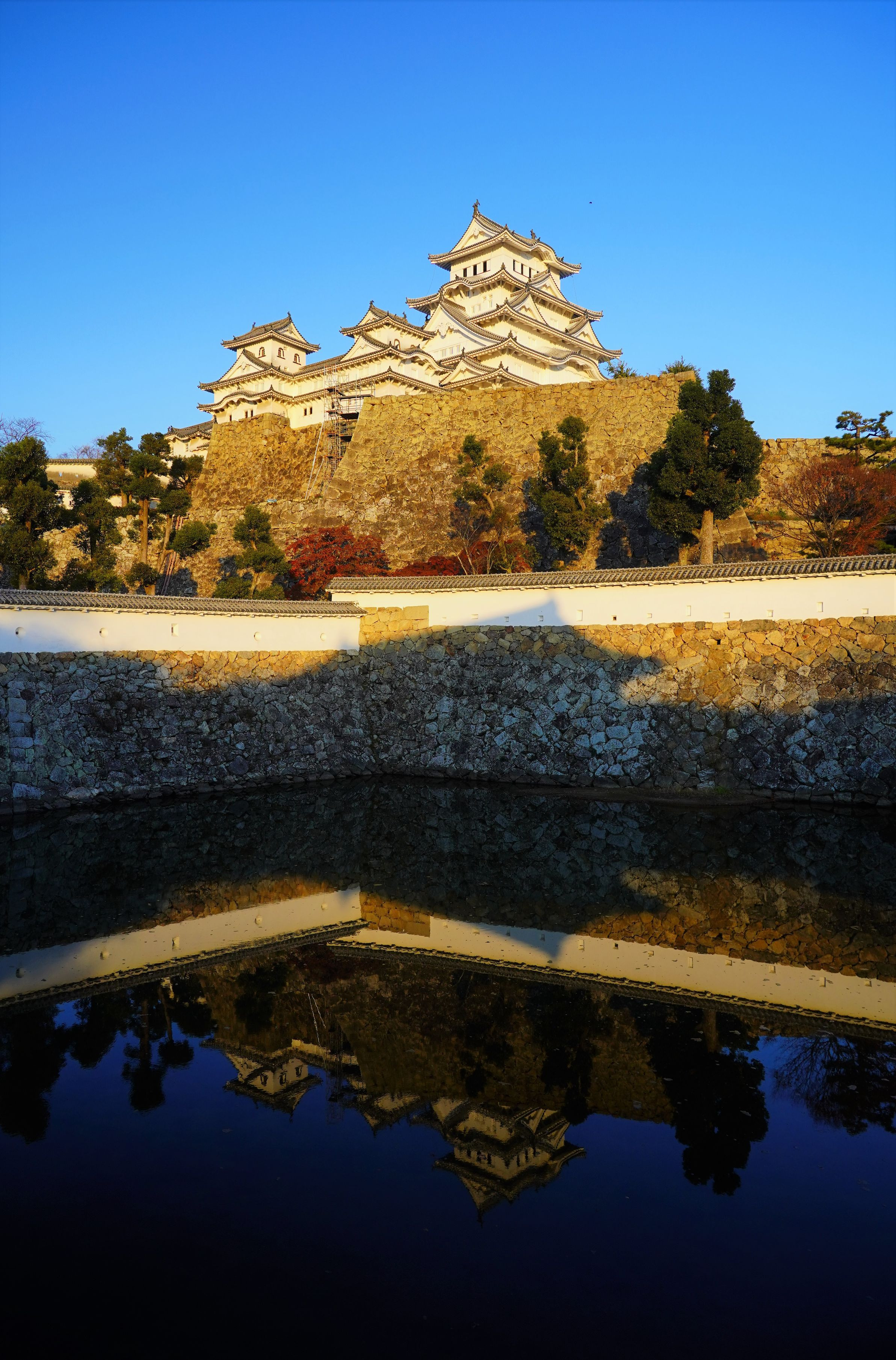 いままでに何度も行きましたが、日の入りのタイミングで行ったことがなく初の景色でした。しかもお客さんがほぼいなく、独り占め状態。 風もなく、この景色も初めて。改めて国宝の偉大さを感じました。
